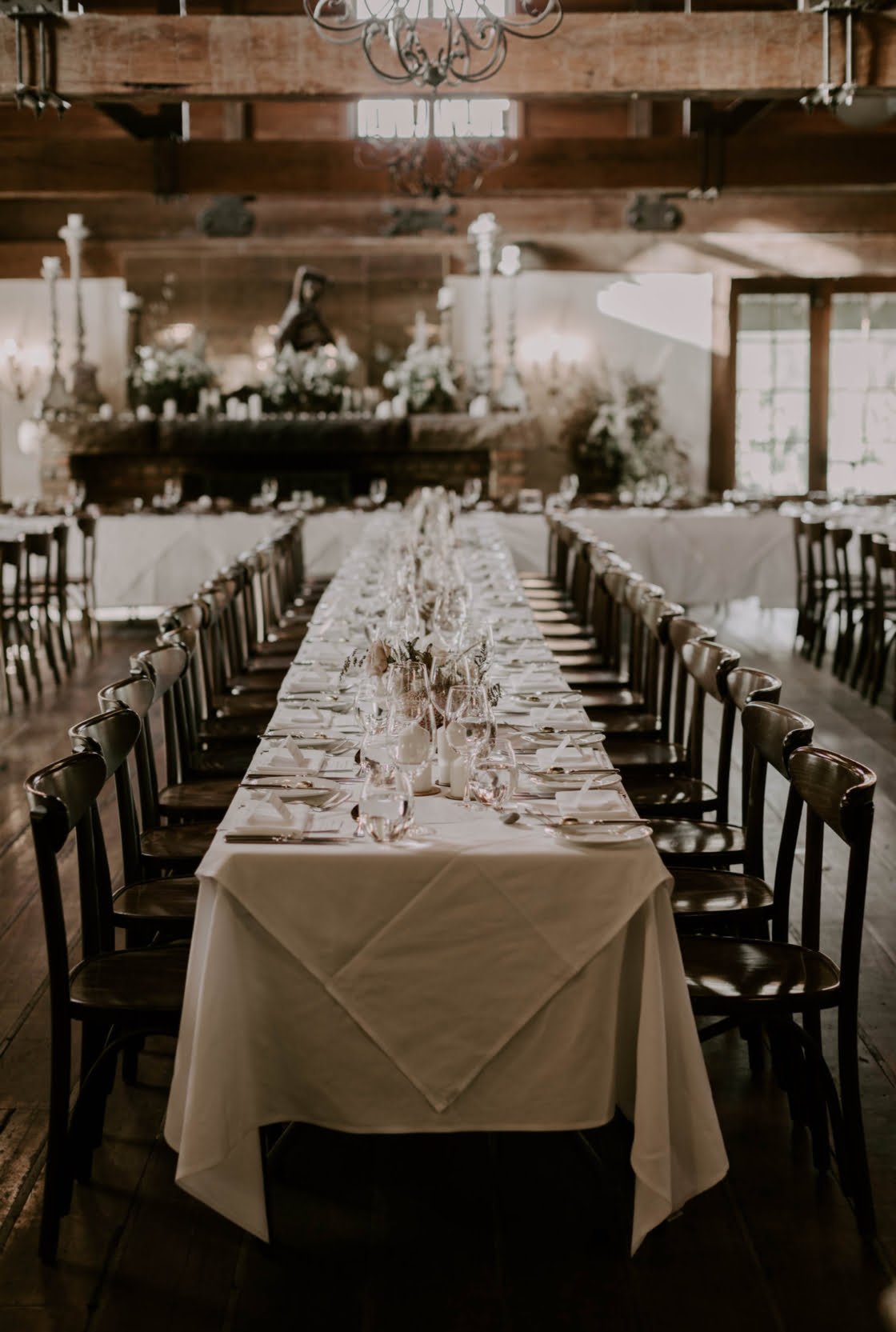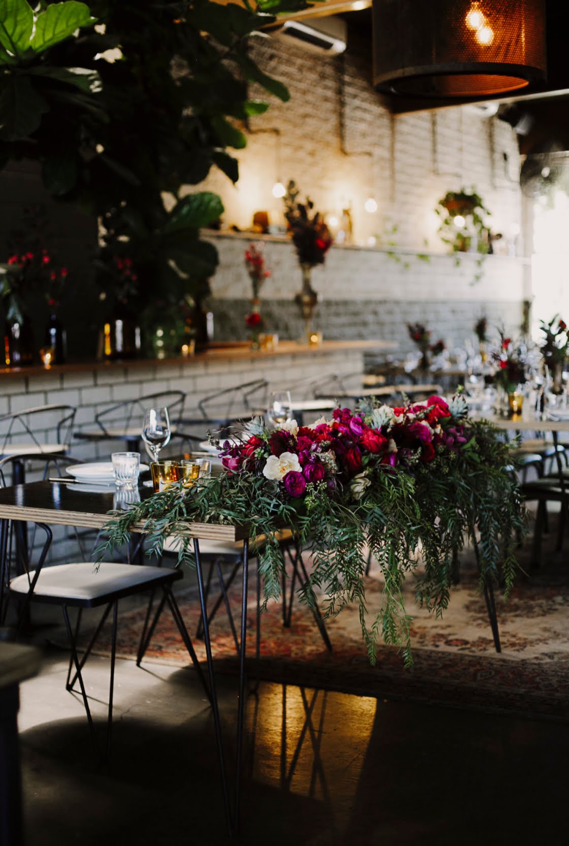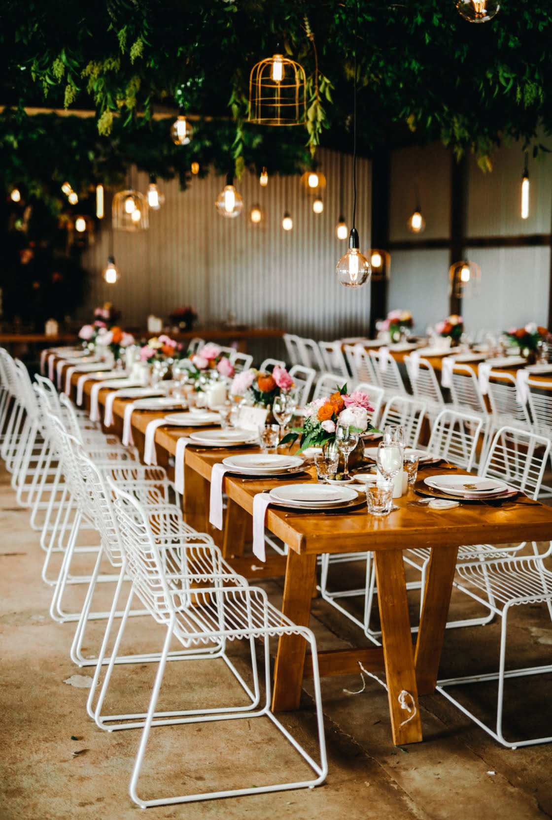 Whether you’re styling an intimate table at your local casual dining establishment (like the above with epic floating florals from Melbourne faves Good Grace & Humour) or a hosting a huge sitdown wedding for a 100 of your nearest and dearest (like the gorgeous set up immediately below at one of our fave Tweed Hinterland wedding venues, the barn at Summergrove Estate) we have something here for everyone. How great are those hanging festoon lights by the way!