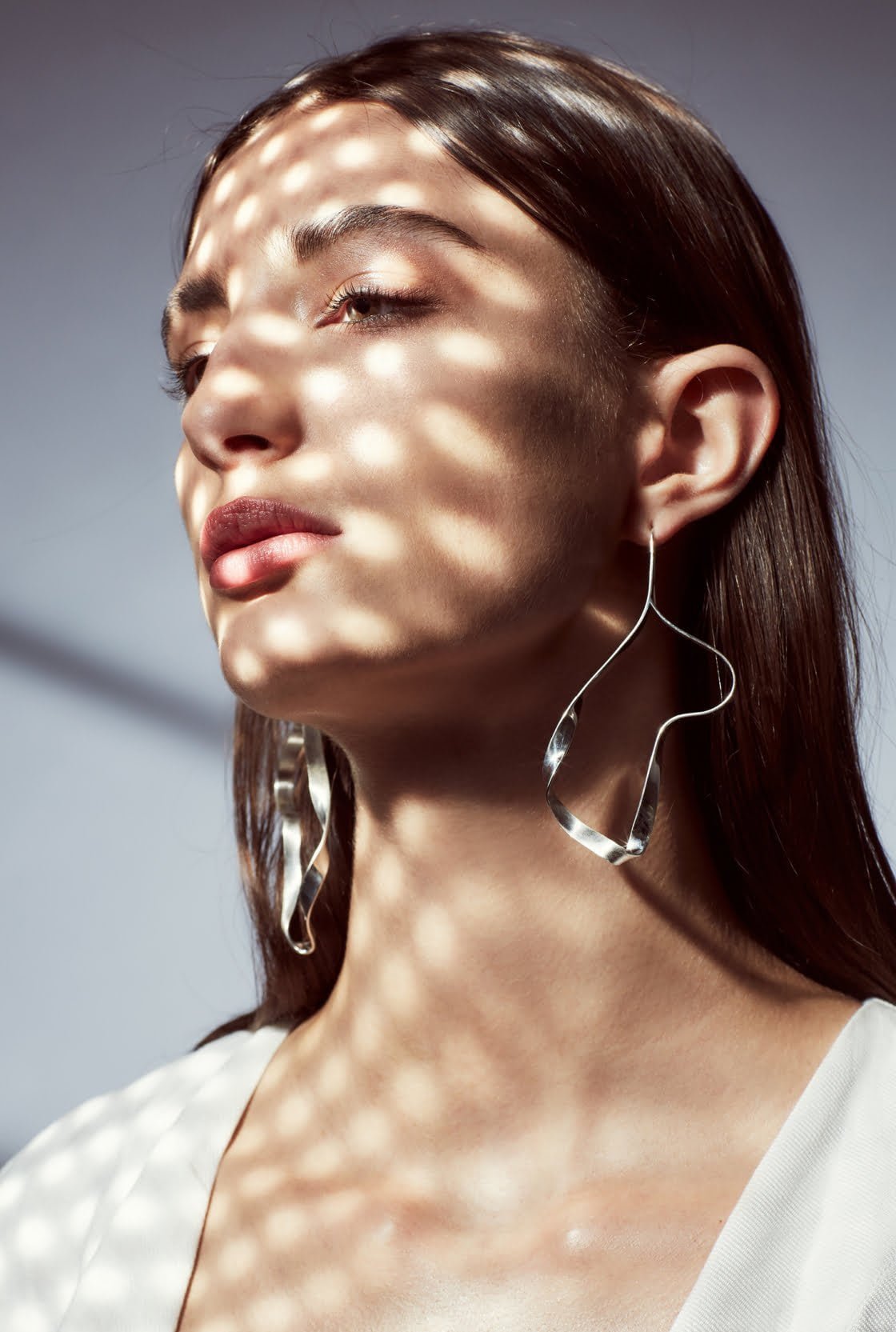 Krystle Knight One Day Crystal Hoops, $169, shop online at Krystle Knight, New Love Clarity Ring, $109, shop online at Krystle Knight & Reflections on The Sea Bracelet, $169, Krystle Knight