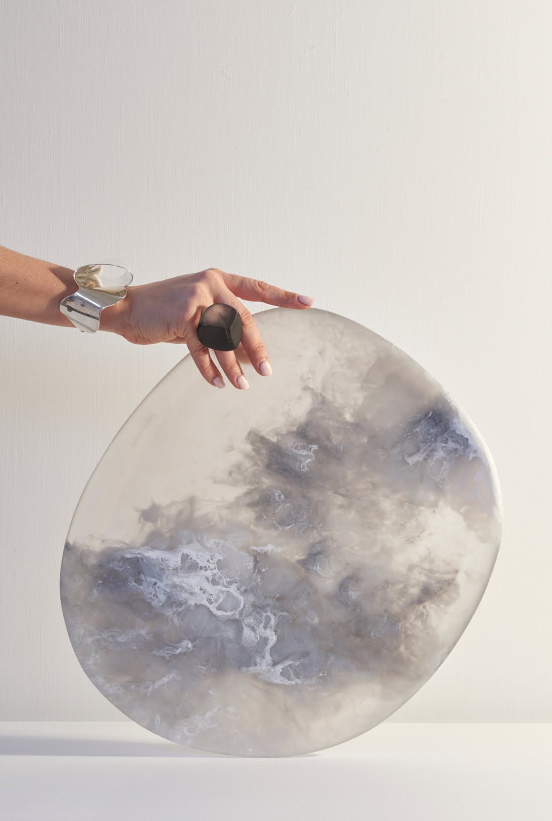 Dinosaur Designs Large Resin Stone Platter in White Marble, $310, shop online at Dinosaur Designs