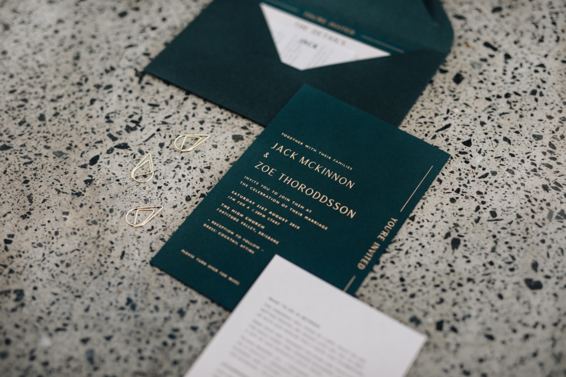 But here’s why we think invites (and stationery in general) needs to be carefully considered. This is where your wedding day theme begins. If you are opting for a no-fuss, chill-fest of a day then your wedding invites can aid in setting the scene well before your guests arrive. Intending to host one big glamorous shindig? Set the scene with something decadent like D&D Letterpress’ deliciously thick stock or Fabled Papery’s signature luxe velvet envelopes. Stationery is your chance to draw your theme together and show your guests what’s important to you.