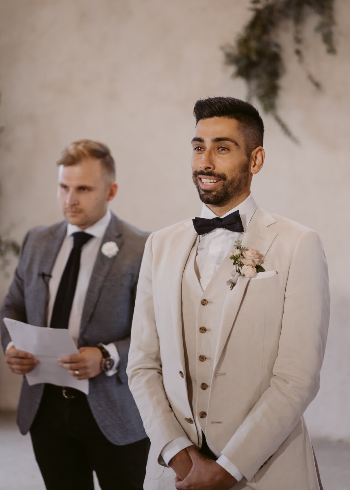 Another repeat offender on our ‘Best of 2019’ lists (you can check out their ceremony setup on our Best of 2019: Styling Ideas post) this time the boys make the cut for their snazzy outfits. Both opted for MJ Bale pants and a Calvin Klein shirt but mixed things up with a MJ Bale and Scotch & Soda jacket each so they were not too matchy matchy. This wedding was photographed by Byron Bay local Nina Claire Photography, you can check out more of her wedding work here.