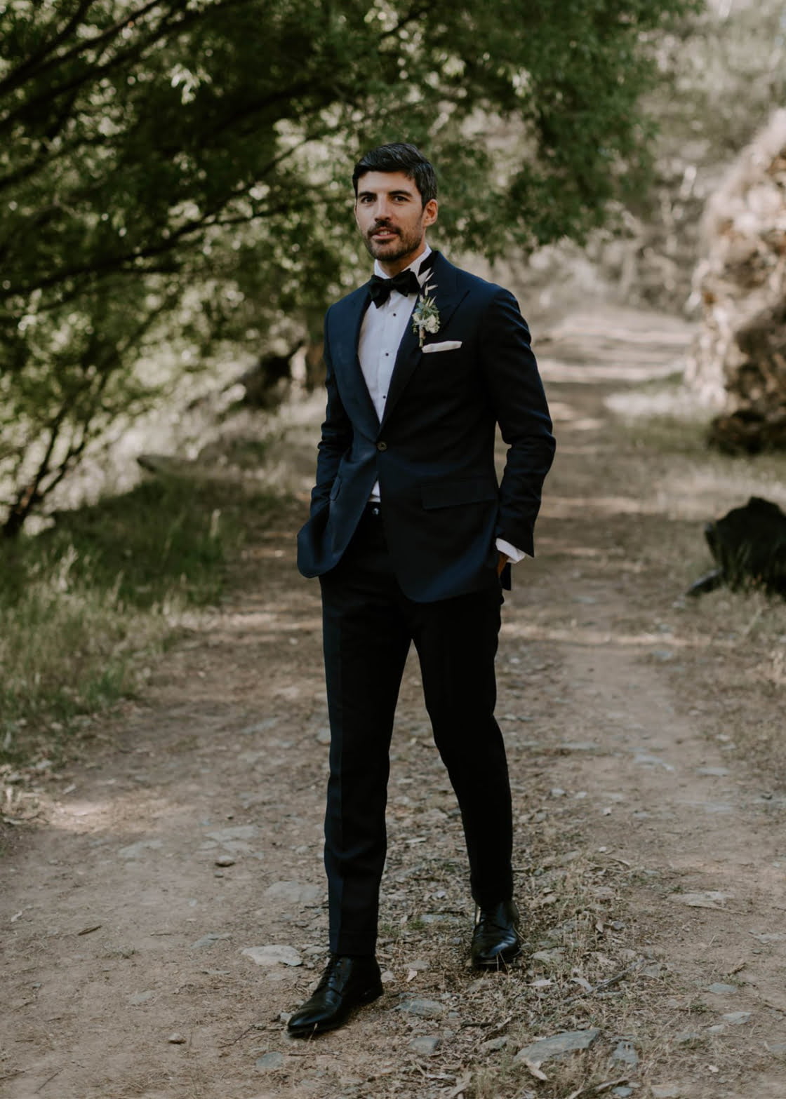 SIMONE & FRED, SNOWY VALLEY, NSWFred scrubbed up a treat in his midnight blue suit by Oscar Hunt Tailers paired with black shoes and a black bow tie. It’s easy to see why Oscar Hunt have been so poplar with readers this year when they have store fronts in Sydney, Melbourne and Adelaide, making them perfectly accessable for east coast grooms. You can check out a few of our favourite suit styles here and more of Fred and Simones wedding, with photos by Janneke Storm, here.