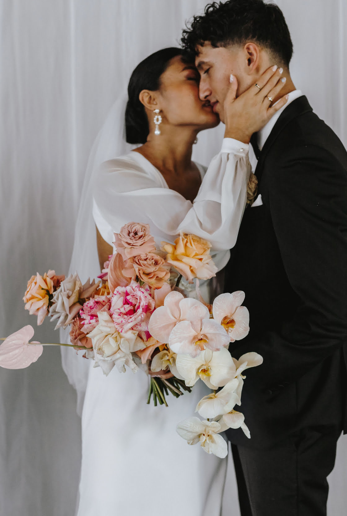 Guys, this is what happens when you make flowers your top priority on your wedding list. You bring the talented Mrs Gibbons Flowers  on board and you get absolute magic. “The flowers were one of my favourite details of the day,” gushes Bianca, who names the of the pretty pastel rose and orchid creations in sunset tones as a standout of her wedding to Noa. “Mrs Gibbons Flowers was the first vendor we picked and from the start, I told Noa that I wanted to splurge on flowers! They exceeded my expectations and more! I cried when I saw my bouquet for the first time.” Naturally, George Bowden Photography did a stand-up job of capturing the big day on film (give him a holler over here if you’re vibing his style).