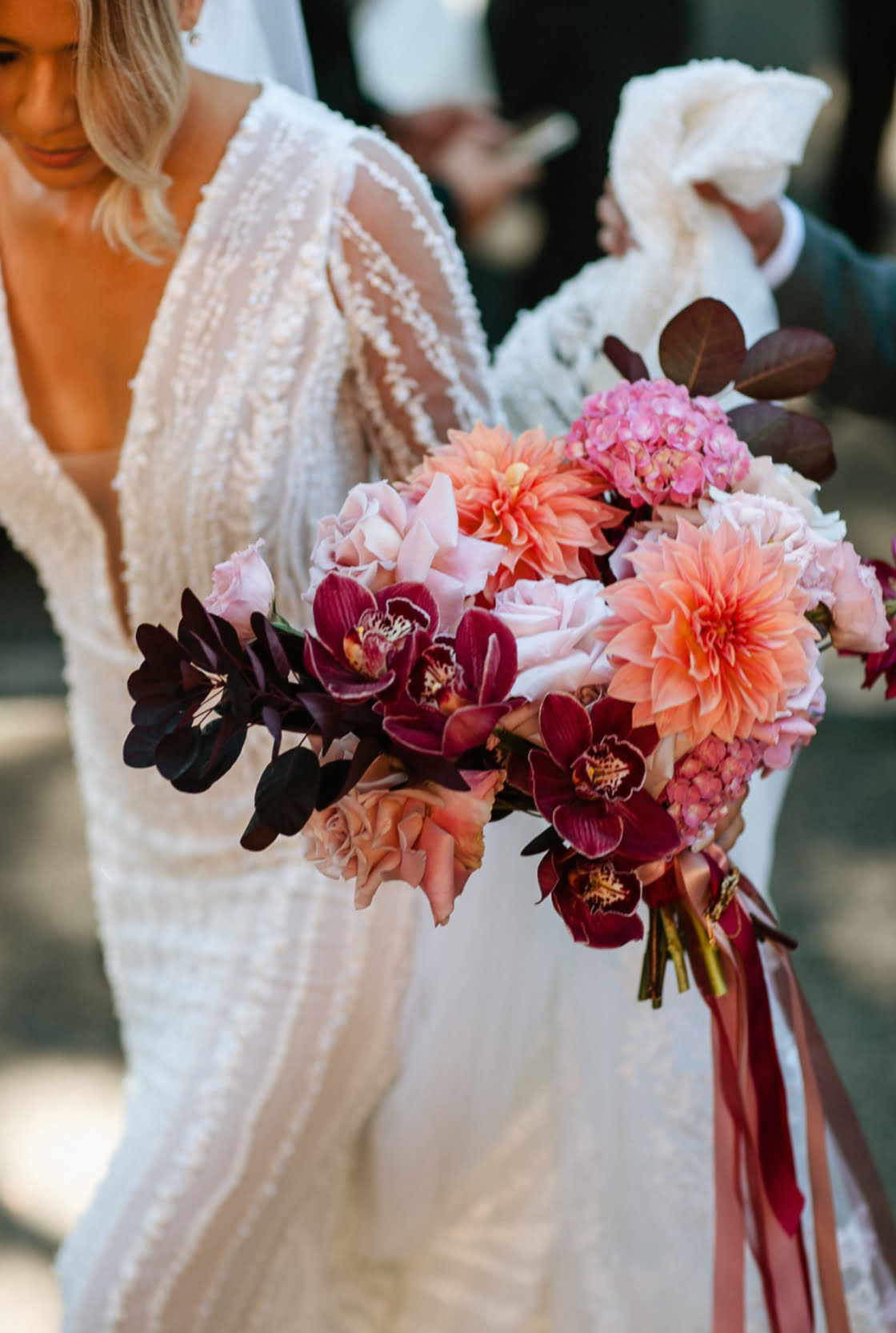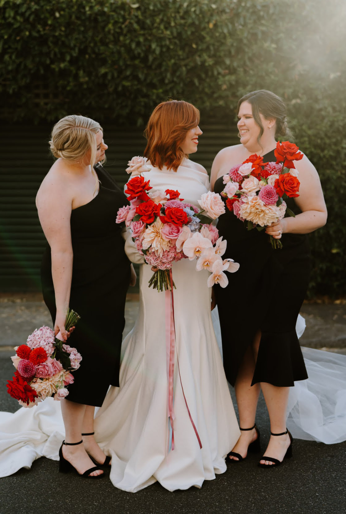 Pink and red is a vibrant colour combo that never goes out of style, but it’s been particularly big this year, with bold, popping hues a bit of an ‘F you’ to old mate COVID. And we, for one, are loving it. Our pal Elsa Campbell snapped Chiara and Lachlan’s big day, shooting some stunning close-ups of the vibrant bunch Pomp and Splendour created for Chiara to hold. “The flowers from Pomp and Splendour were incredible,” says the bride (whose Annette of Melbourne dress we can’t get enough of) – and she’s not wrong! “Such a pop of colour, they adorned the tables and really were such a statement.” Bloomin’ gorgeous, gal! (Psst – get in touch with the clever cookies at Pomp and Splendour for your own big day blooms, and click here for Elsa Campbell’s contact details. She really does know how to take a pic!)