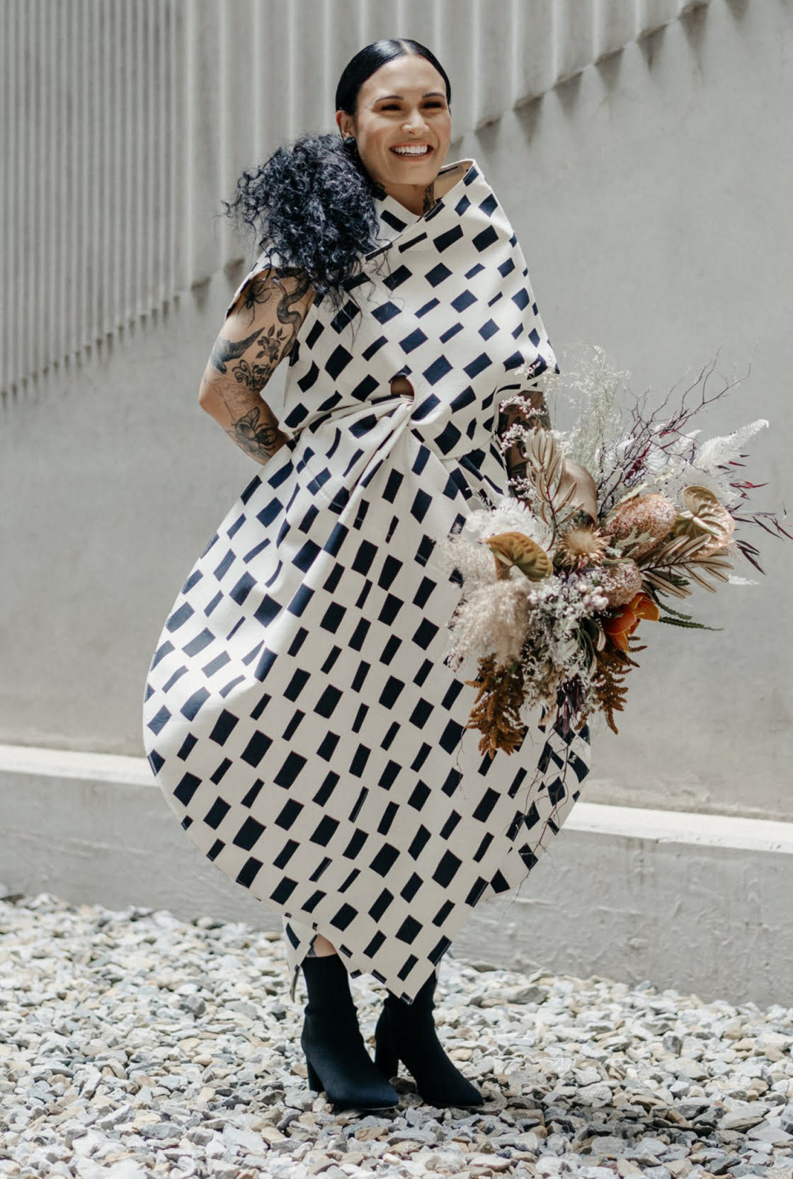 This right here, folks, is where art and fashion collide and when Tash found her incredible structural dress in online Italian boutique Ivo Milan, she had to have it for her big day. “I’m not someone to typically wear dresses so I knew going in that I didn’t want a traditional wedding dress. As soon as I laid eyes on the dress I knew it was the one. It just had this amazing structure and sculptural silhouette and was so aesthetically breathtaking, that I knew I wasn’t going to look any further.” The dress in question is a Junya Watanabe x Marimekko Comme des Garcons number purchased from Ivo Milan, which “specialises in avant-garde clothing (or radical fashion – in their words)”.  Lauren Campbell is responsible for the stunning pics and if you’re loving that impressive bouquet, you’re not alone – the Laurel & Lace creation made it into our 2021 Top 10 Bouquets Roundup (a must-click, if we do say so ourselves).
