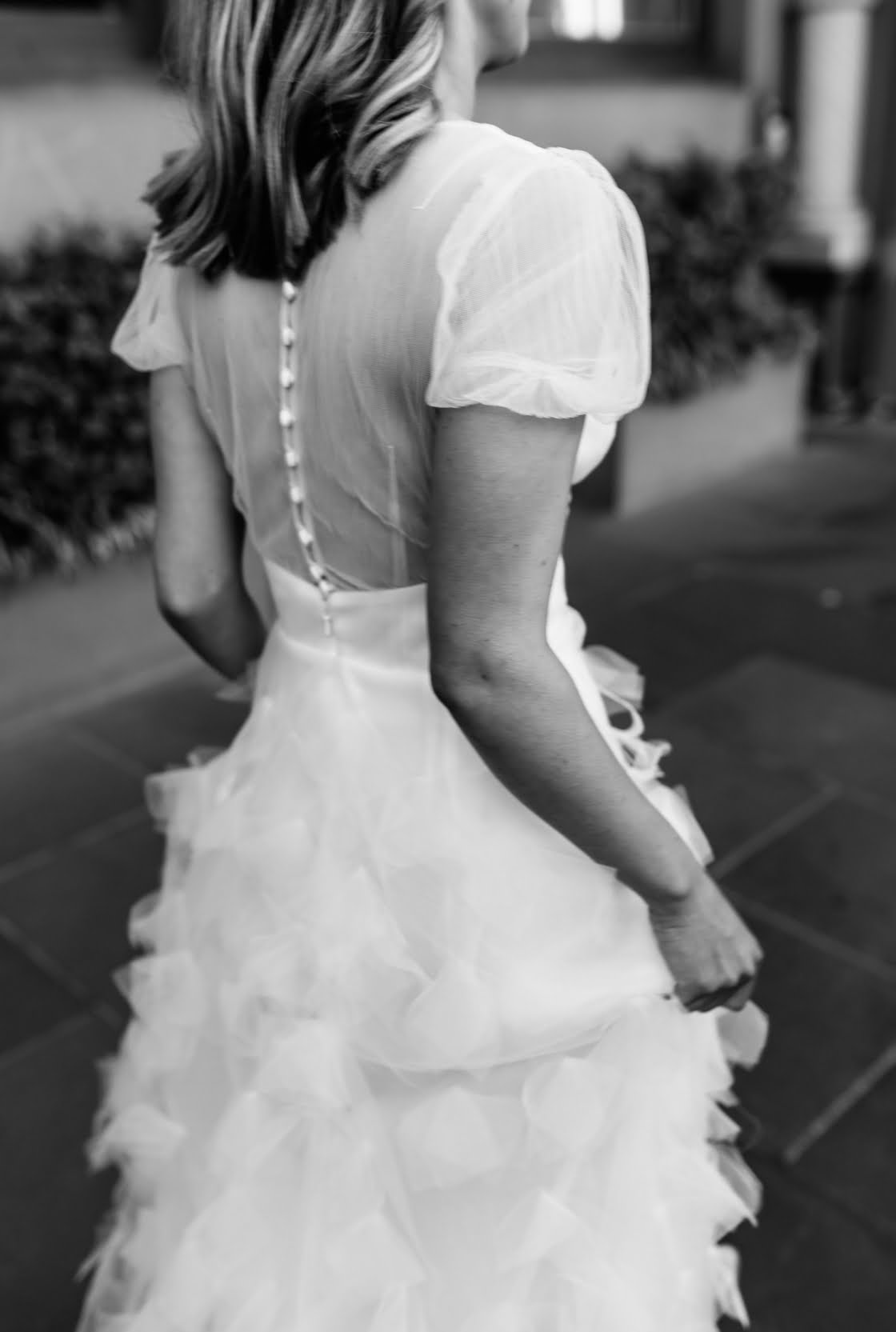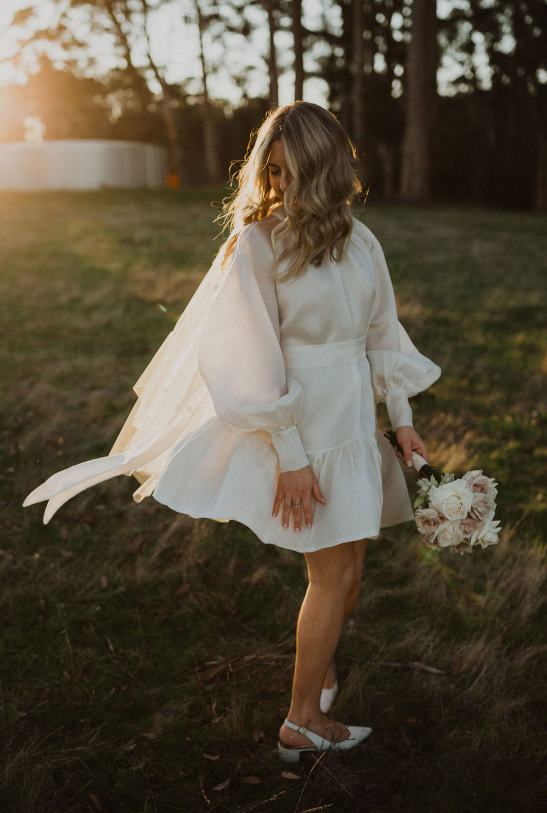 “It only took a couple of wedding dress appointments for me to decide Luci Di Bella Design House was the wedding dress designer for me,” spills Melbourne bride Liv of her cute-as-heck dress. “It was my first wedding dress appointment, which was direct with the designer – and that was the deciding factor for me!” Dishing out tonnes of advice based on years of experience (“not all trends suit all brides!”), Luci created the exact dress Liv had been dreaming of, from those sweet sheer sleeves to the whimsical tufted skirt. “Luci De Bella was incredibly fun and easy to work with to create the dress I had envisaged for the day! I absolutely loved it.” The talented Ali Bailey was in charge of photos on the day, and if you want to see more (we know you do), check out all the snaps of Liv and Andrew’s  big day – which, just quietly, also made it into our Top 10 Styling Ideas for the year.