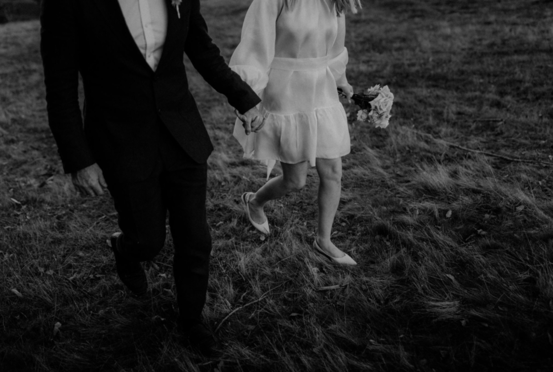 We mentioned how much we love a wedding mini, right? Nicola nailed the look in her cute Harriette Gordon dress – though believe it or not, it wasn’t her first pick. “I had planned to wear a beautiful long silk gown made by Harriette Gordon,” spills the bride – but after a last-minute decision to elope, she changed her mind, feeling the “original dress… wasn’t suited to the elopement we had planned”. Luckily, Harriette came through with this cute number! “I felt so beautiful in it and it really complimented the style of elopement… She is a dream to work with and I can not recommend her enough!” Blake sourced his suit from our friends at M.J. Bale and Paris Hawken Photography caught all the best bits on camera.