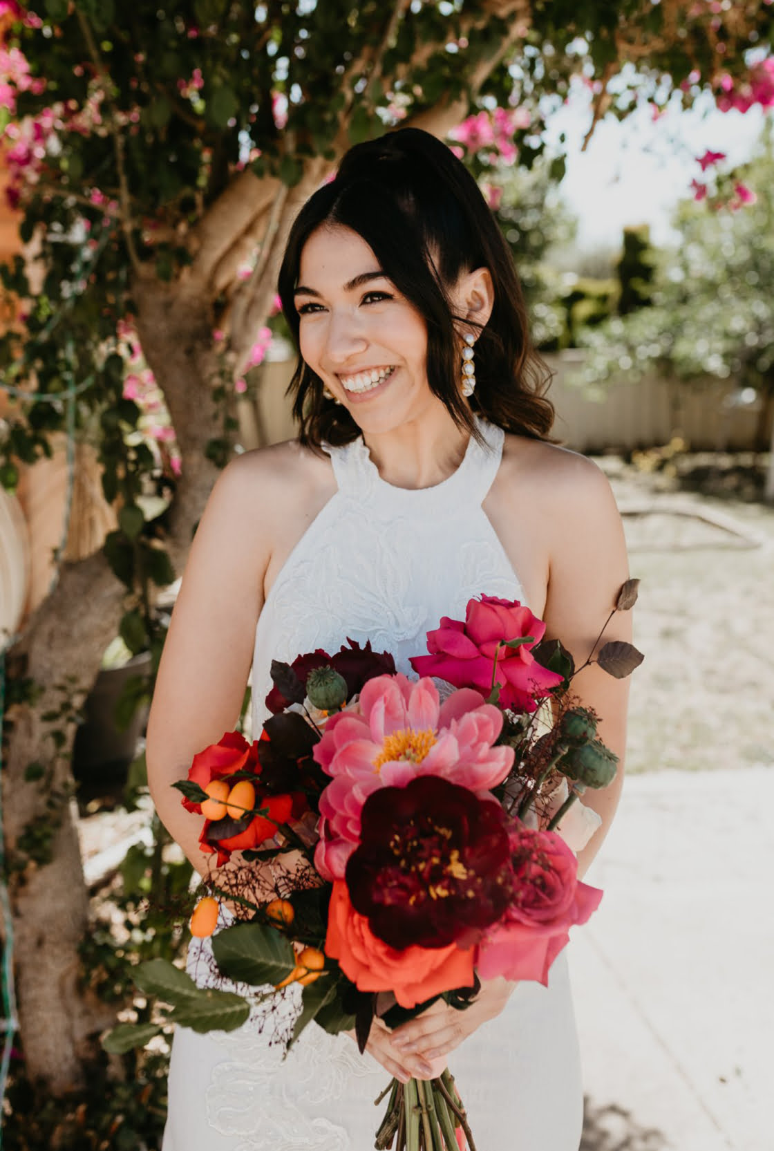 With Shubho making it into the year’s Top 10 Grooms’ Styling list and Belle popping up right here in 2021’s Best Bridal Looks, it’s clear we have one seriously well-dressed couple on our hands here folks. After spending a day traipsing around bridal stores, Belle couldn’t find ‘the one’… until she hit up Georgia Young Couture. “I booked an appointment as soon as I could,” she shares. “Honestly, I could have chosen multiple gowns from Georgia’s collection. She was also absolutely gorgeous to work with and has the best laugh.” With a motto of “trust the expert”, this bride also got Georgia’s take on jewellery and a veil for the big day, for a result that was next-level stunning. One Spoon Two Spoon was on hand to make the mems last a lifetime and those bloomin’ beaut botanicals were the work of none other than  Pomp and Splendour. Swoon.