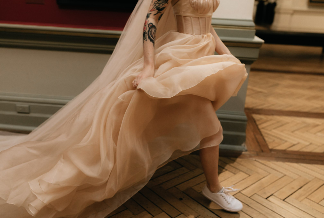 Before she joined team Hello May as Fashion Market Editor, Ty proved she knows how to pull a look together – just check out that dreamy  J. ANDREATTA gown. Paired with pure white Spring Court sneakers, Ty was serving edgy-cool fairytale-romance-meets-street-chic bridal vibes when she and Ben tied the knot. “I used to stop and stare at the window displays at J. ANDREATTA, so that’s where I headed!” she spills. “I had my sights set on one of Jessica’s most romantic and flirty dresses but tried them all on just to be safe. In the end, though, it was that first dress that had me feeling like a teenager in love.” Lei Lei Clavey is to thank for these delicious shots, snapped in the Art Gallery NSW (what a venue!) – check out all the rest of the pics over here.