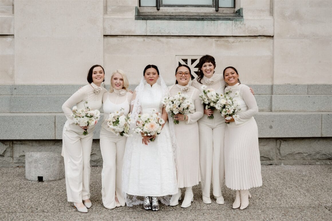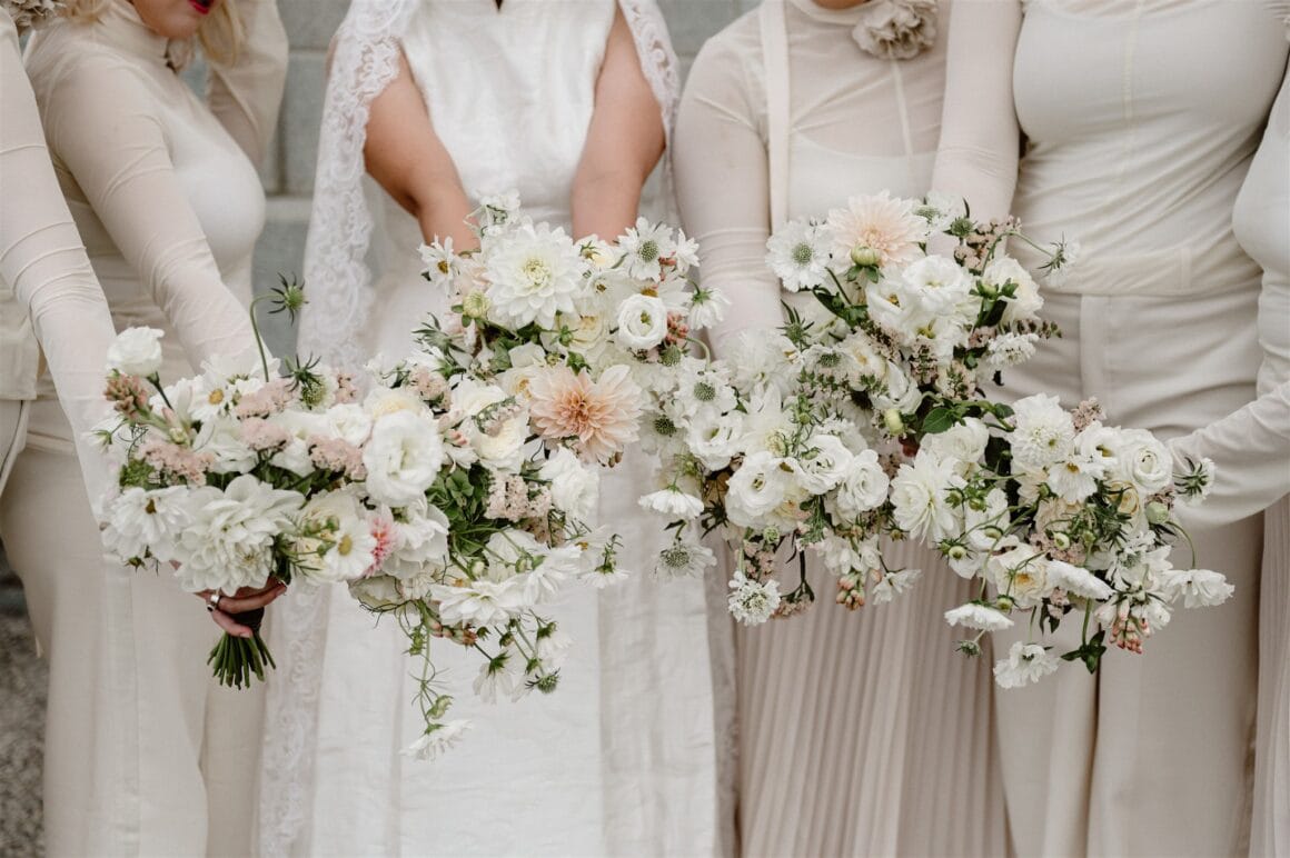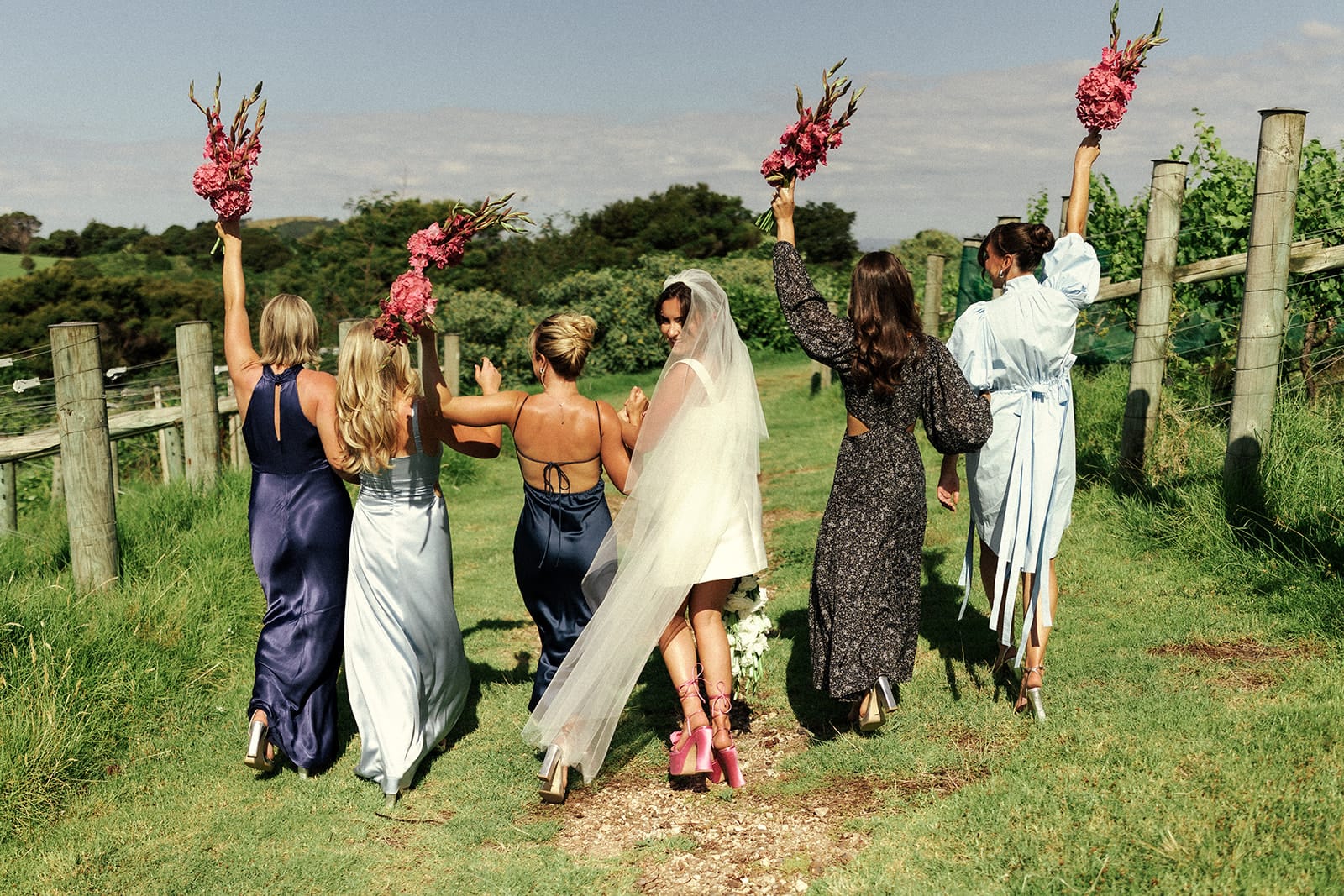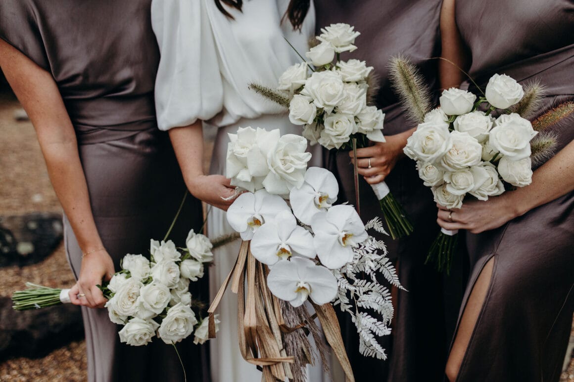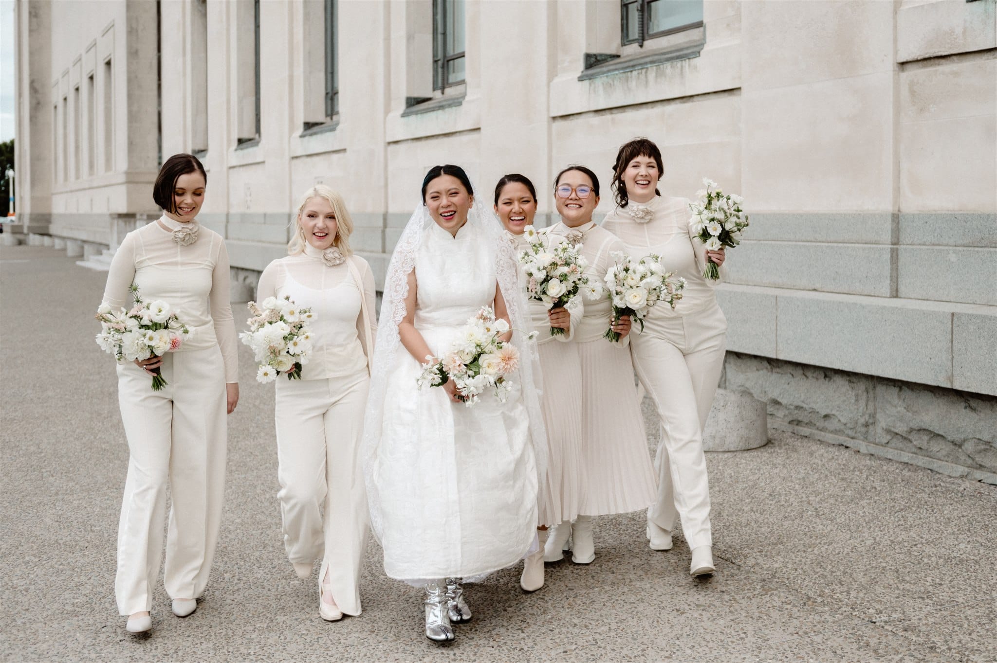 There was no way Melody and her maids were not making this list – their all-white outfits from Uniqlo and Zara added to the “romantic and natural” inspiration for this New Zealand wedding. And don’t even get us started on the bride’s killer silver boots!