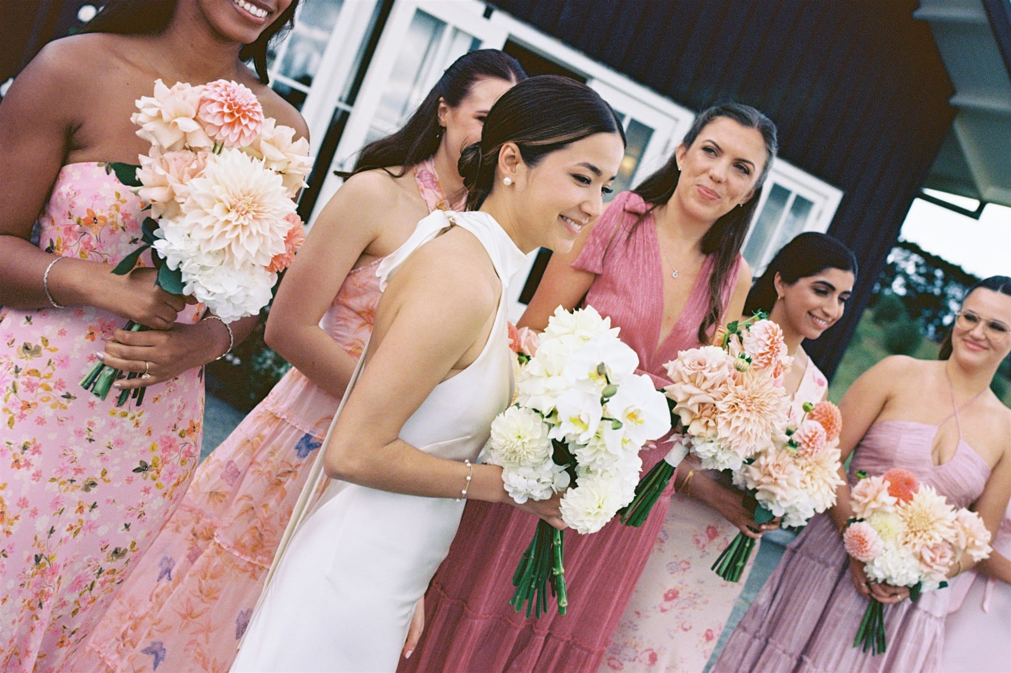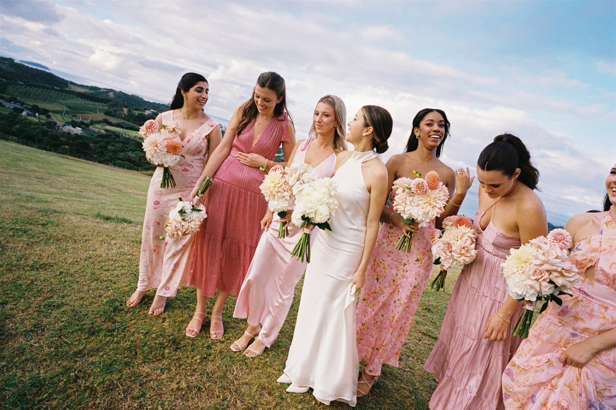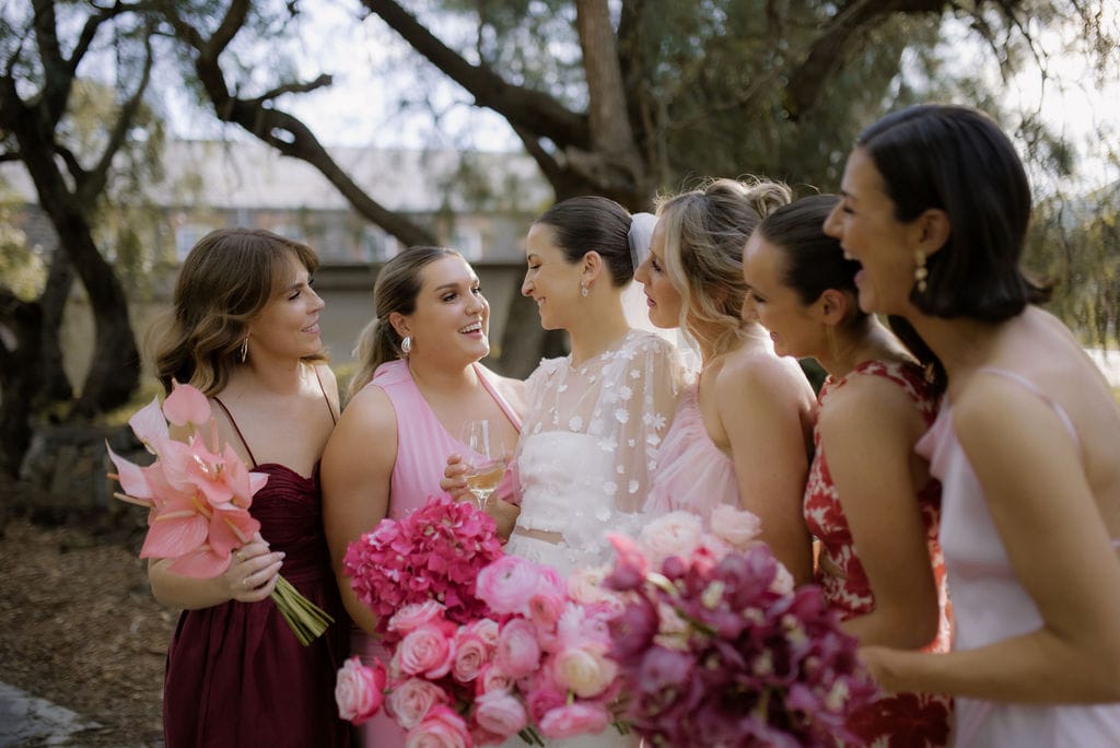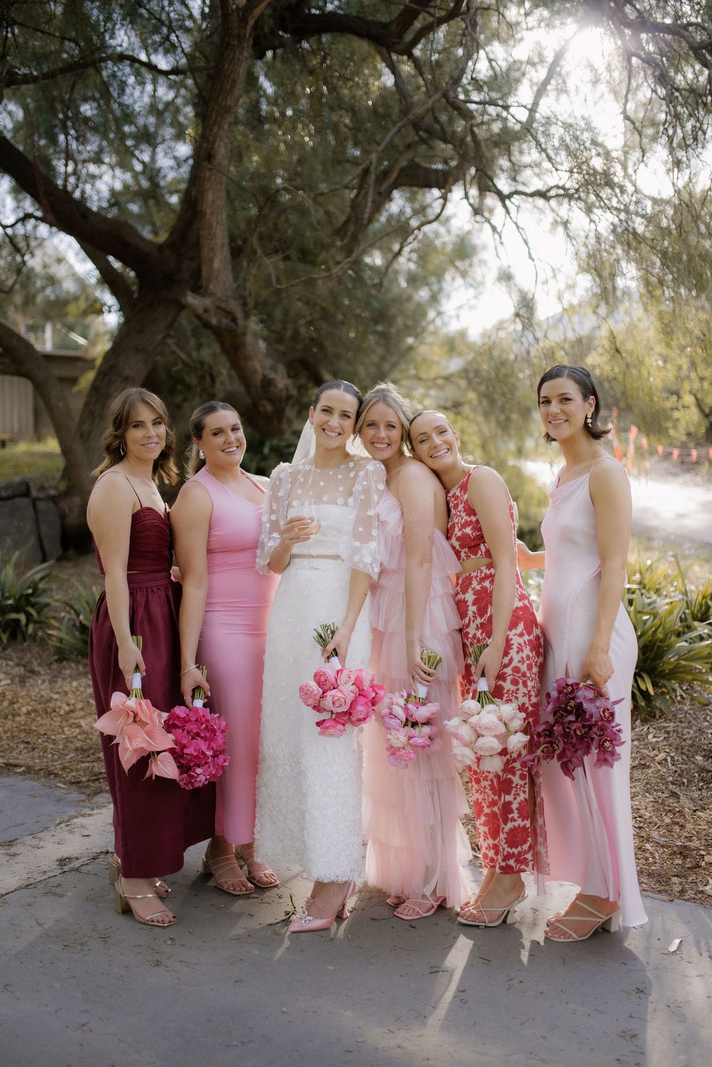 “Each bridesmaid had a different dress in different shade of pink as well as a mixture of texture and print, and our florist Sarah from Botanica Fresh Flowers and I worked closely together to ensure they each had the right pink in their bouquet to pair back with the dress,” bride Felicity told us. You’ll see the rest of this wedding at Provenance Wines in the Real Wedding Special (shop it here).