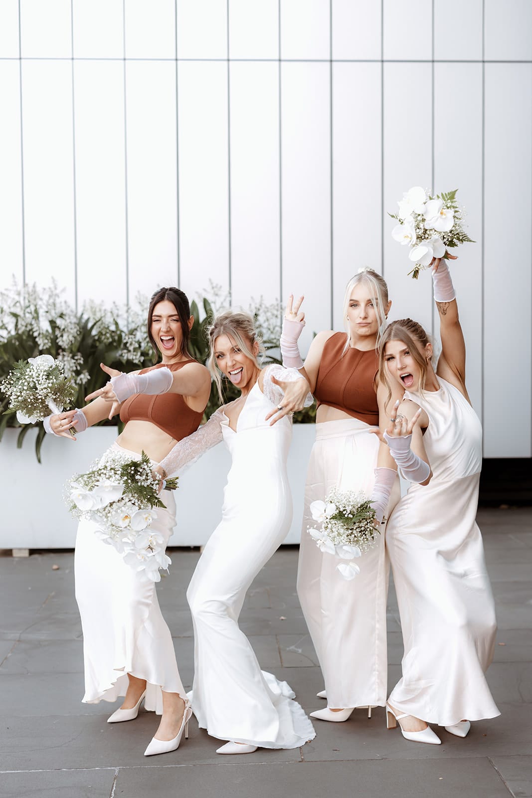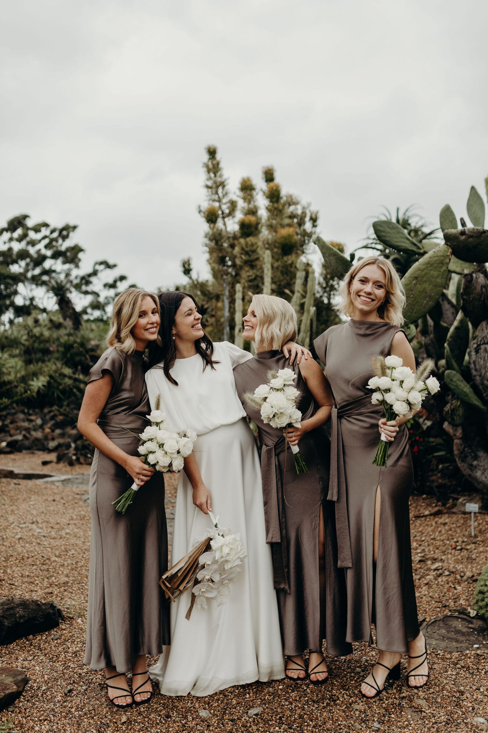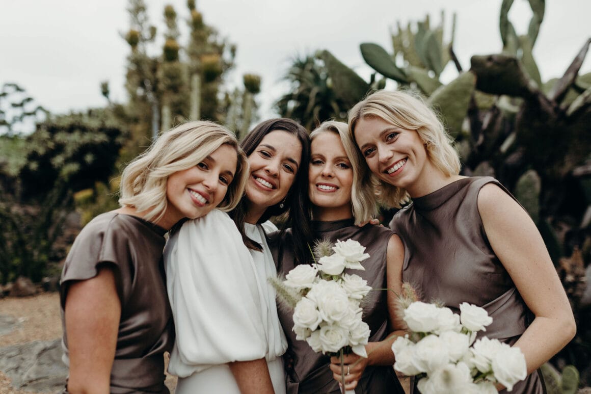 Decked out in one of our favourite bridesmaid dress designers, Bec + Bridge, Michala’s wedding party was super chic and effortlessy elegant. We love that muted chocolate shade and asymmetric cut. If you’re searching for no-fuss bridesmaid gowns in sleek silhouettes and a variety of shades, you can’t go past Bec + Bridge.