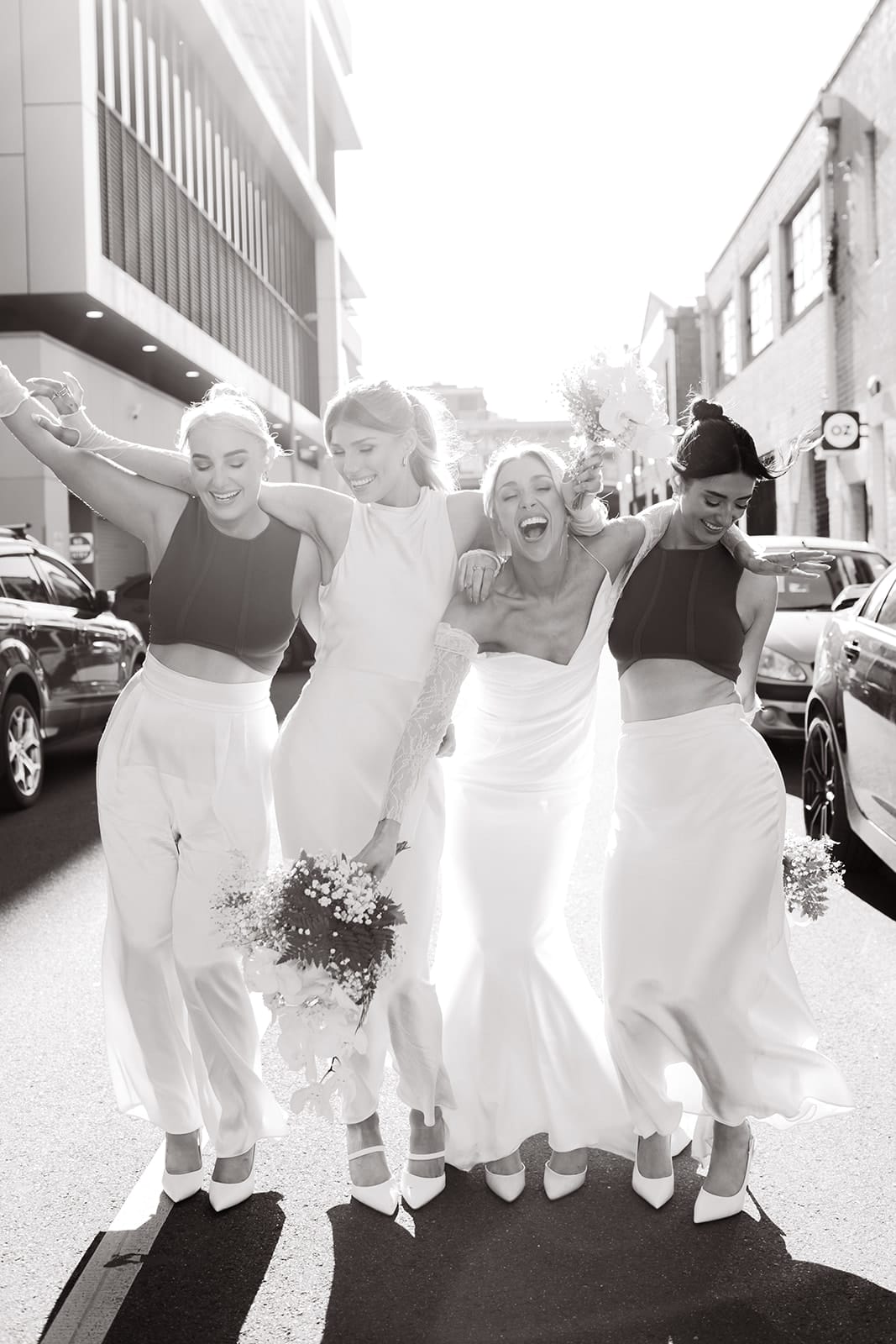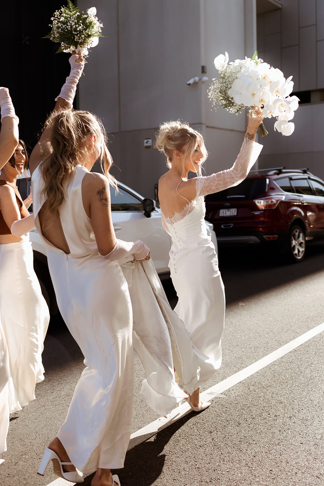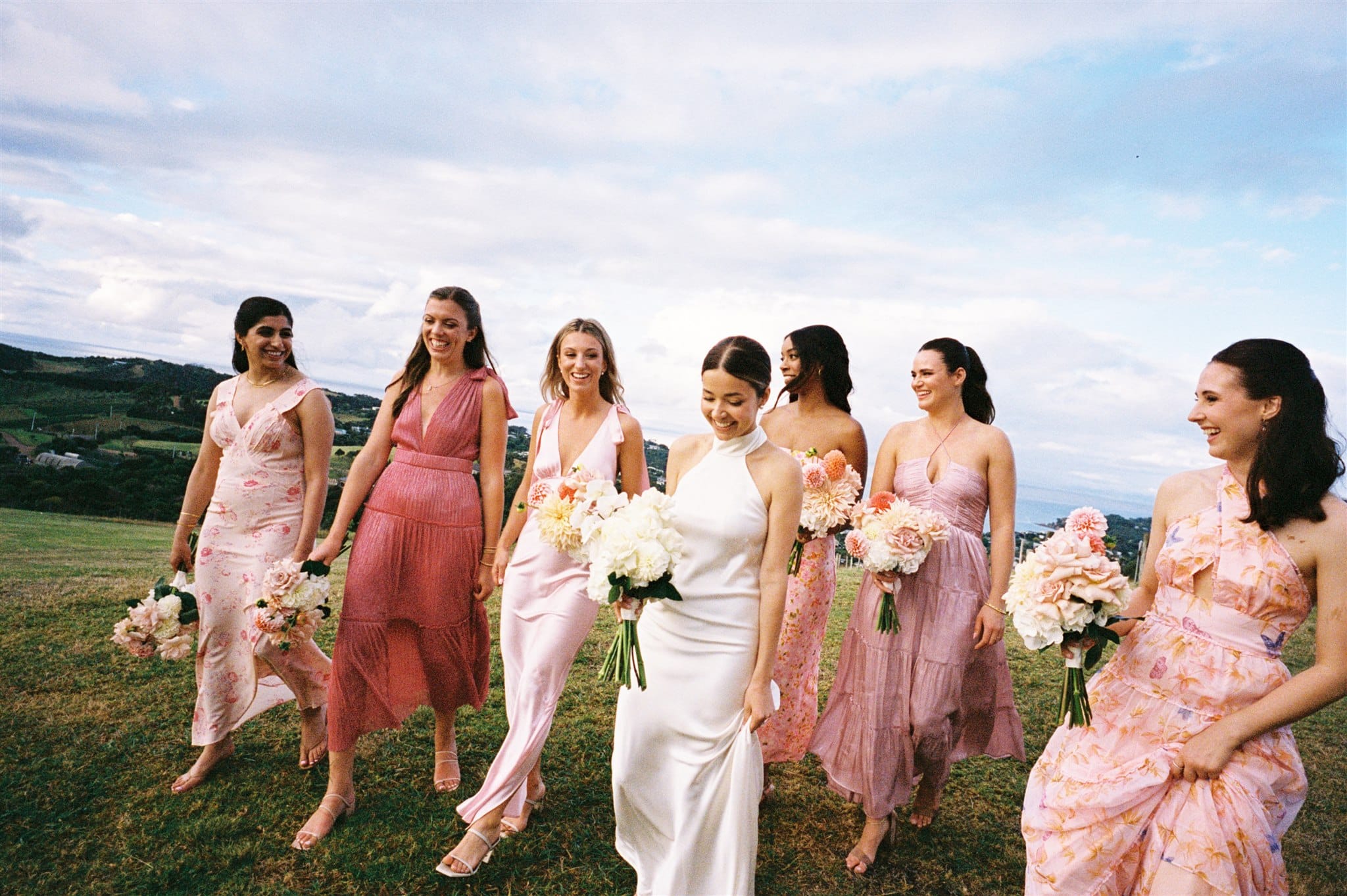 Decked out in one of our favourite bridesmaid dress designers, Bec + Bridge, Michala’s wedding party was super chic and effortlessy elegant. We love that muted chocolate shade and asymmetric cut. If you’re searching for no-fuss bridesmaid gowns in sleek silhouettes and a variety of shades, you can’t go past Bec + Bridge.