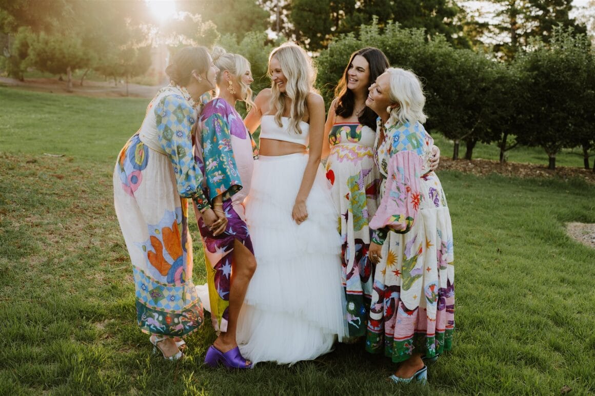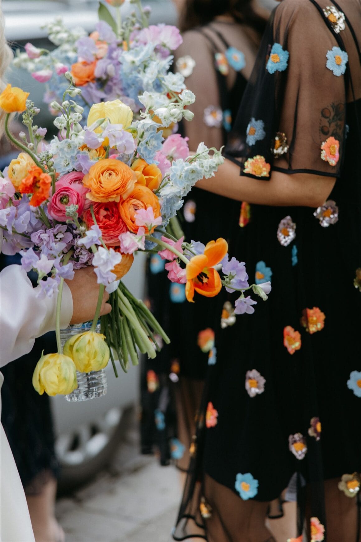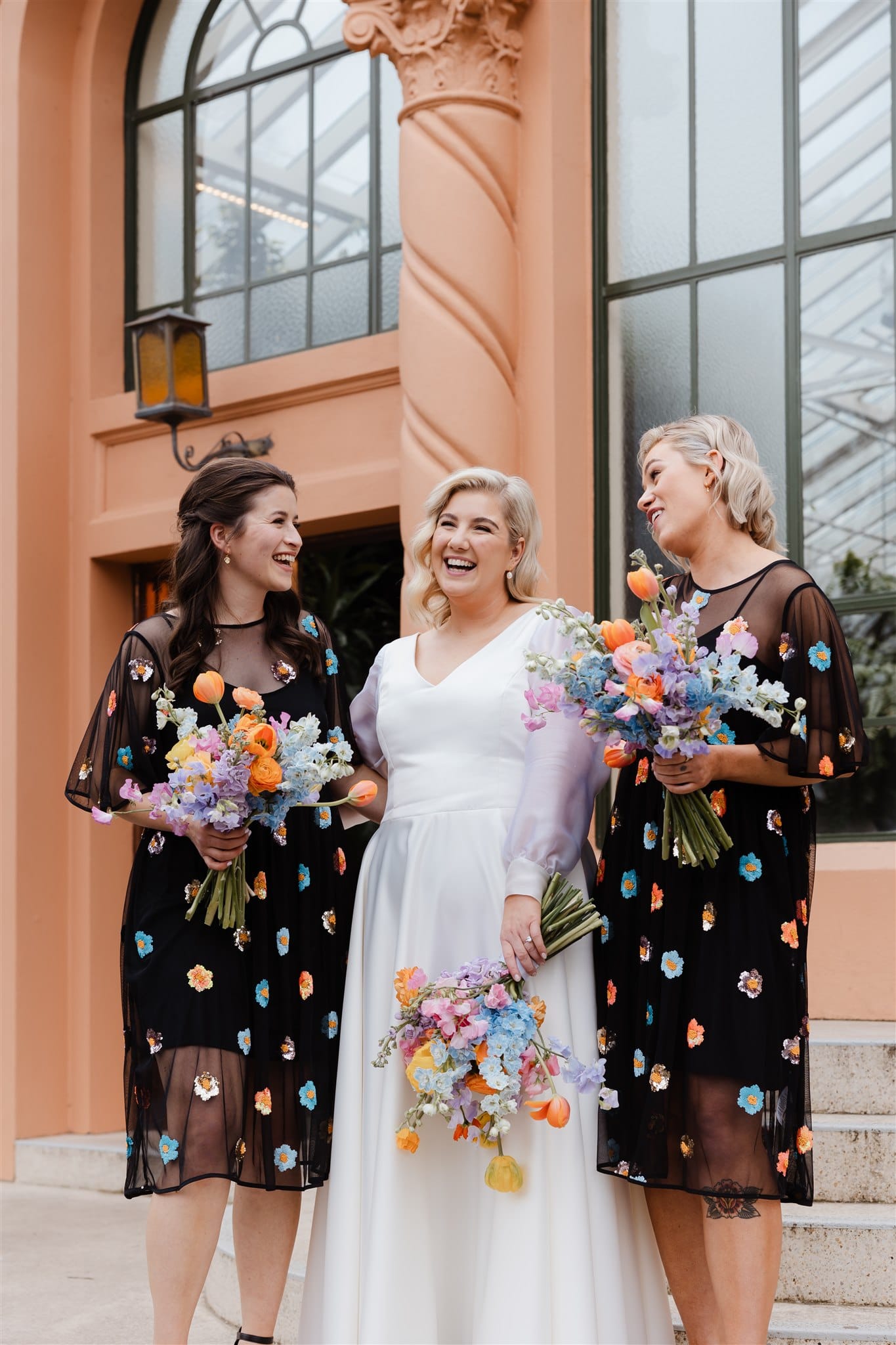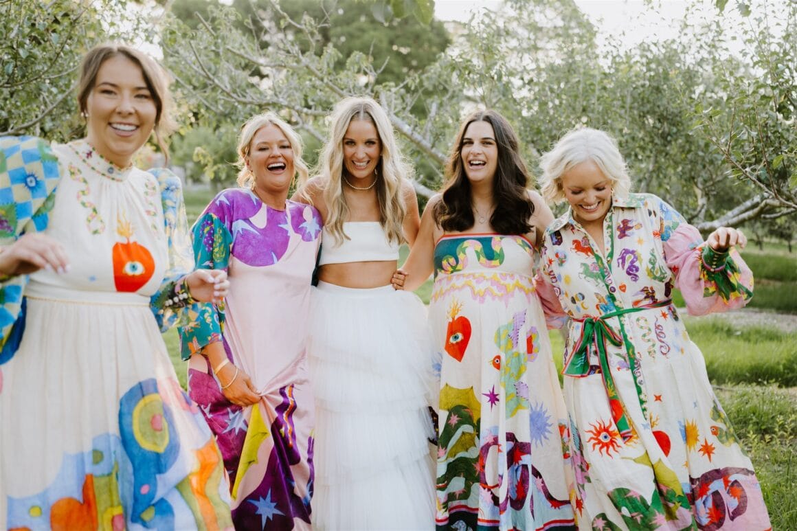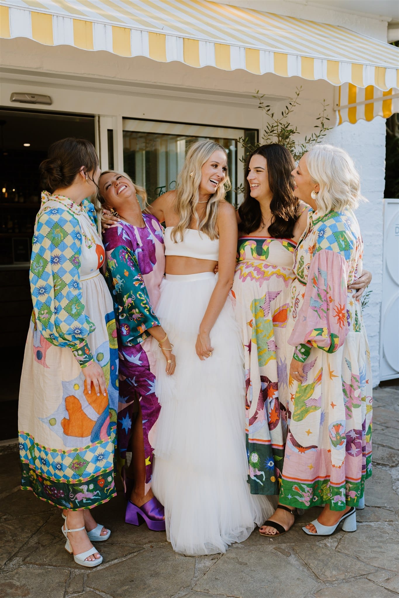 “I loved the idea of introducing colour and fun through the flowers and outfits,” Hannah told us. “My bridesmaids wore Gorman, which I love for their hectic prints and colours, and Ross at Bloom Boy really nailed the colourful whimsical vibe I was going for on the flowers.”