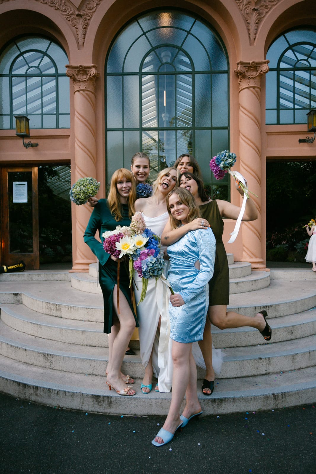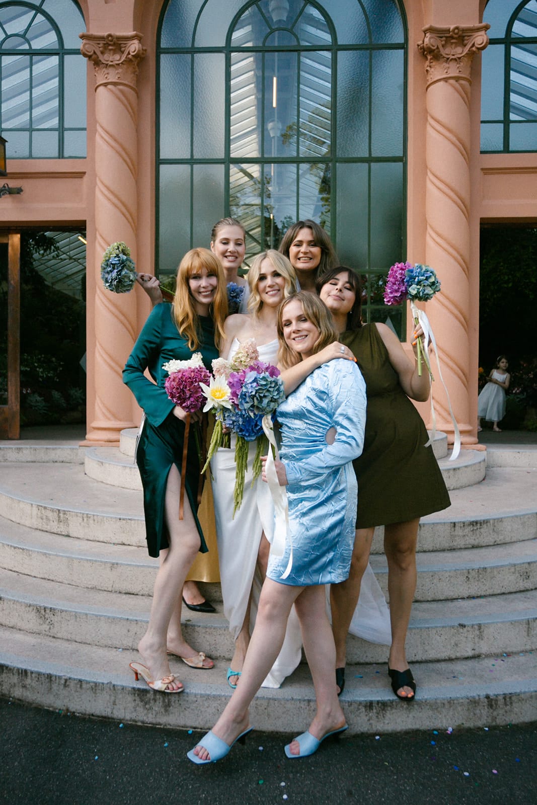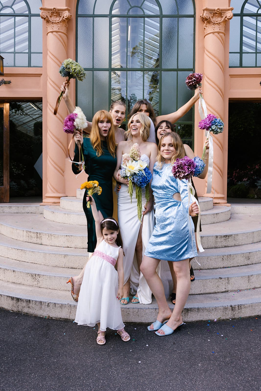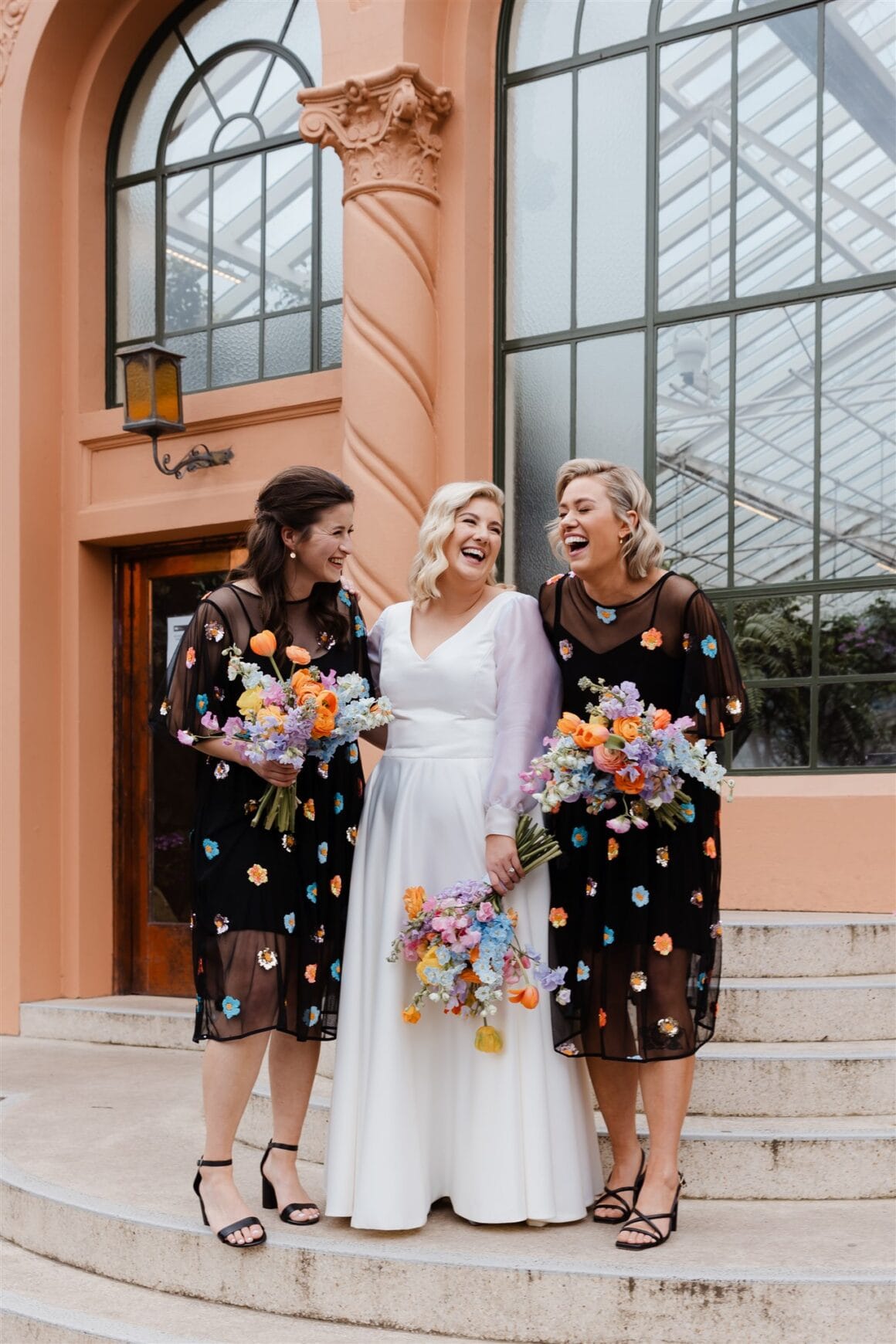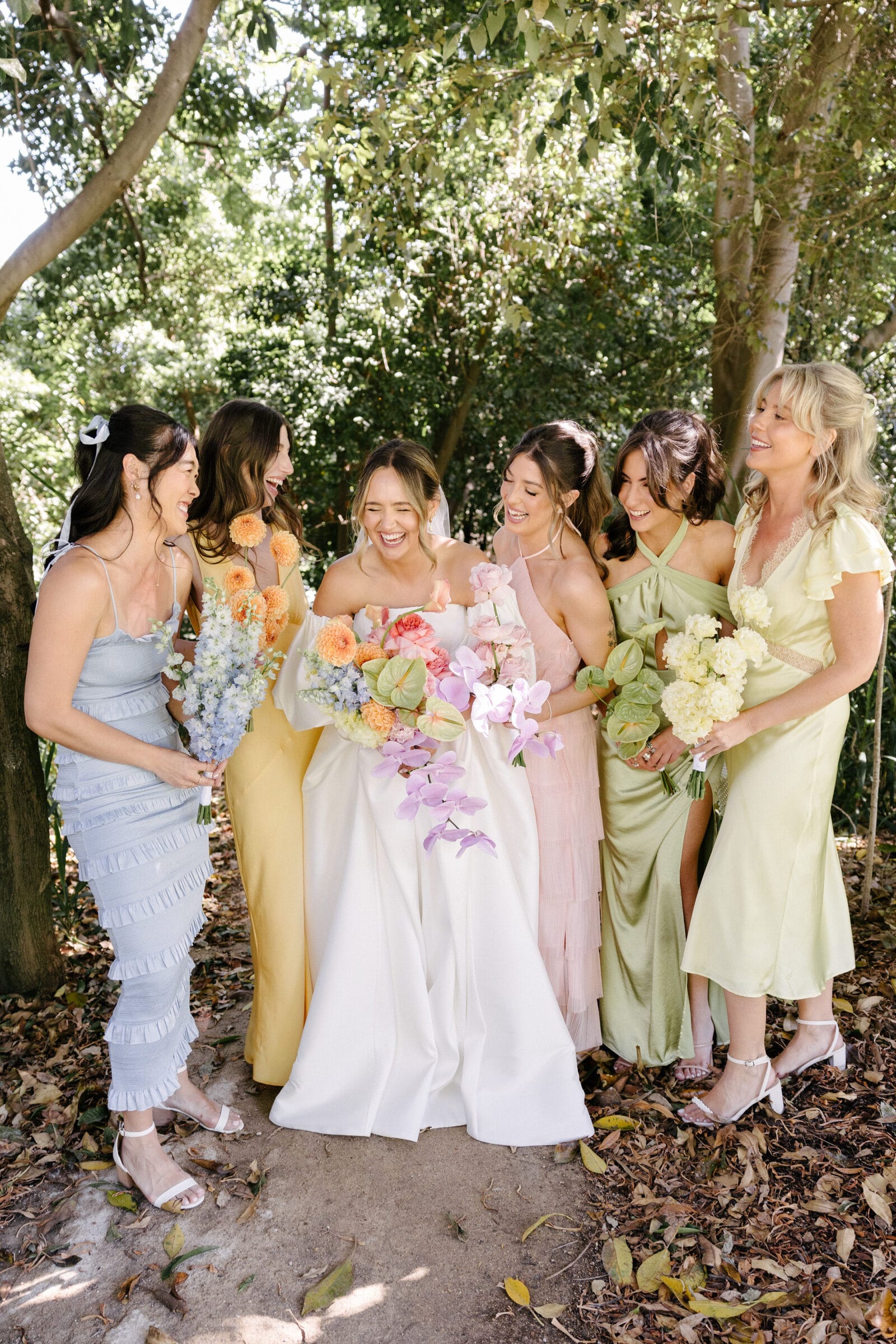 “I loved the idea of introducing colour and fun through the flowers and outfits,” Hannah told us. “My bridesmaids wore Gorman, which I love for their hectic prints and colours, and Ross at Bloom Boy really nailed the colourful whimsical vibe I was going for on the flowers.”