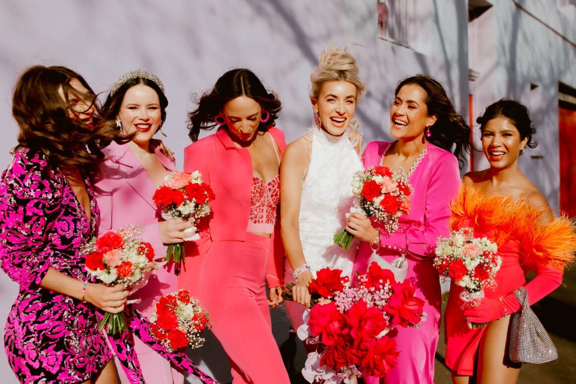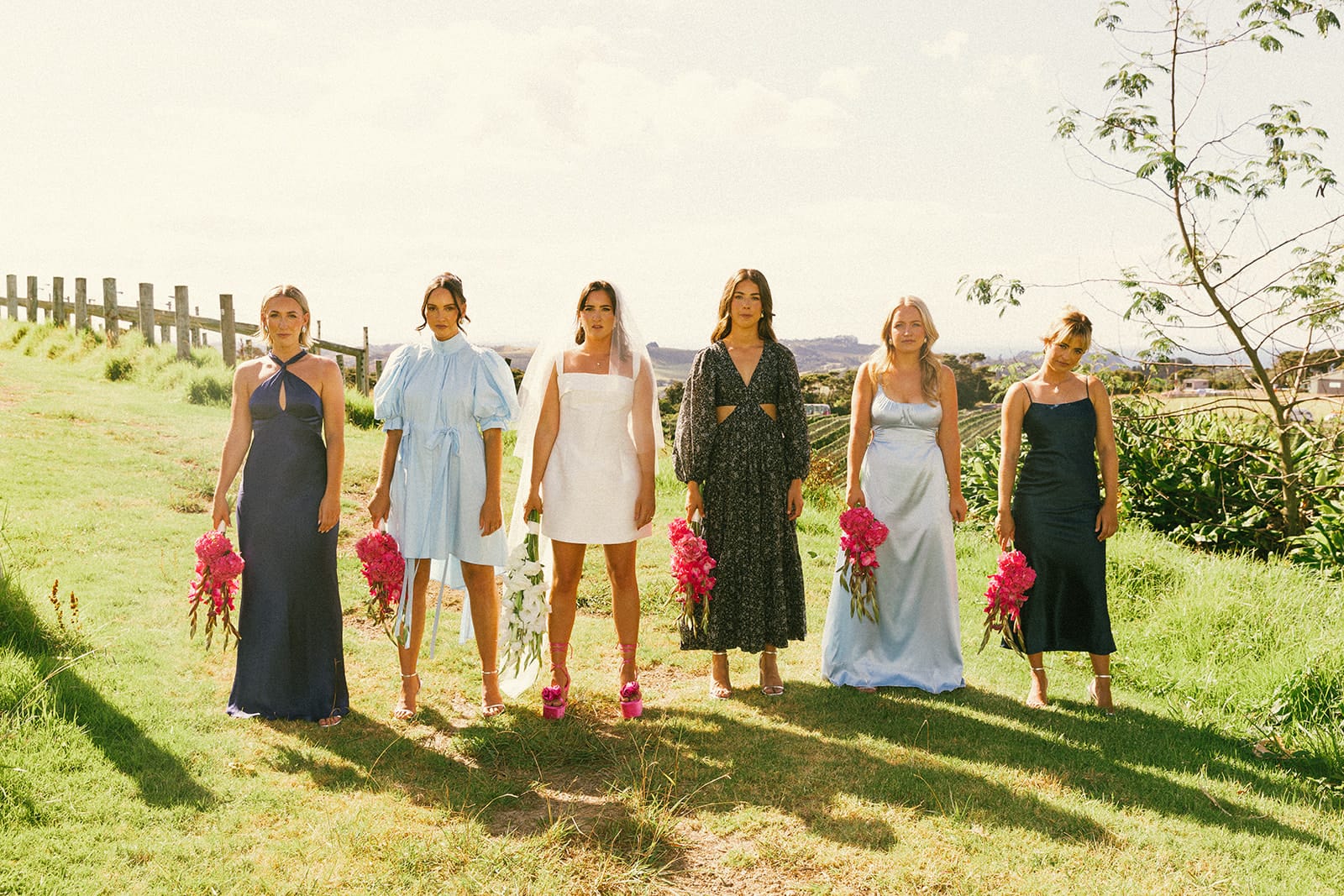 A mismatched delight and pretty in PINK! Ale’s bridal party were on brand for the theme of the day on the beautiful Waiheke Island, which was “timeless and bright”, with the newlyweds encouraging guests to “wear colourful attire, avoiding black. We wanted the occasion to feel happy and warm.” See the rest of the wedding here.