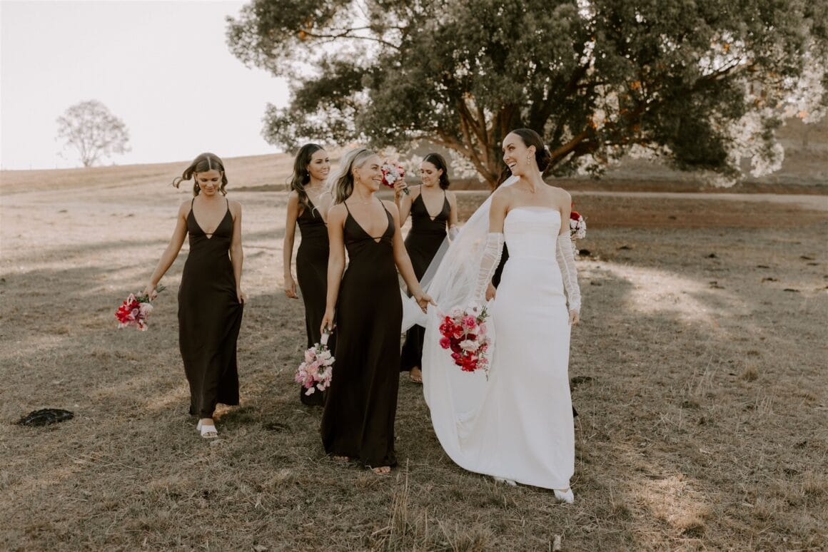 Chic, sleek, timeless black never goes out of fashion as Ines’s closest gals prove in this here Queensland wedding. Entering the party to Lana Del Ray‘s Say Yes to Heaven, the bridesmaids wore gorgeous Manning Cartell numbers matching perfectly with the “formal garden party” vibe of the day.