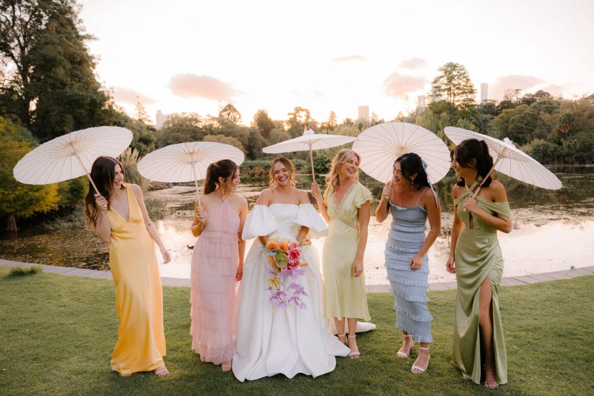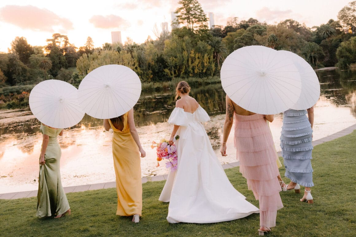 The “perfectly mismatched bridesmaid dresses in the most stunning colour pallete,” were one of bride Katie’s favourite details, when these two tied the knot at The Terrace in Melbourne’s Royal Botanical Gardens. “Each dress represented each girl’s personality and they looked so incredible together.”