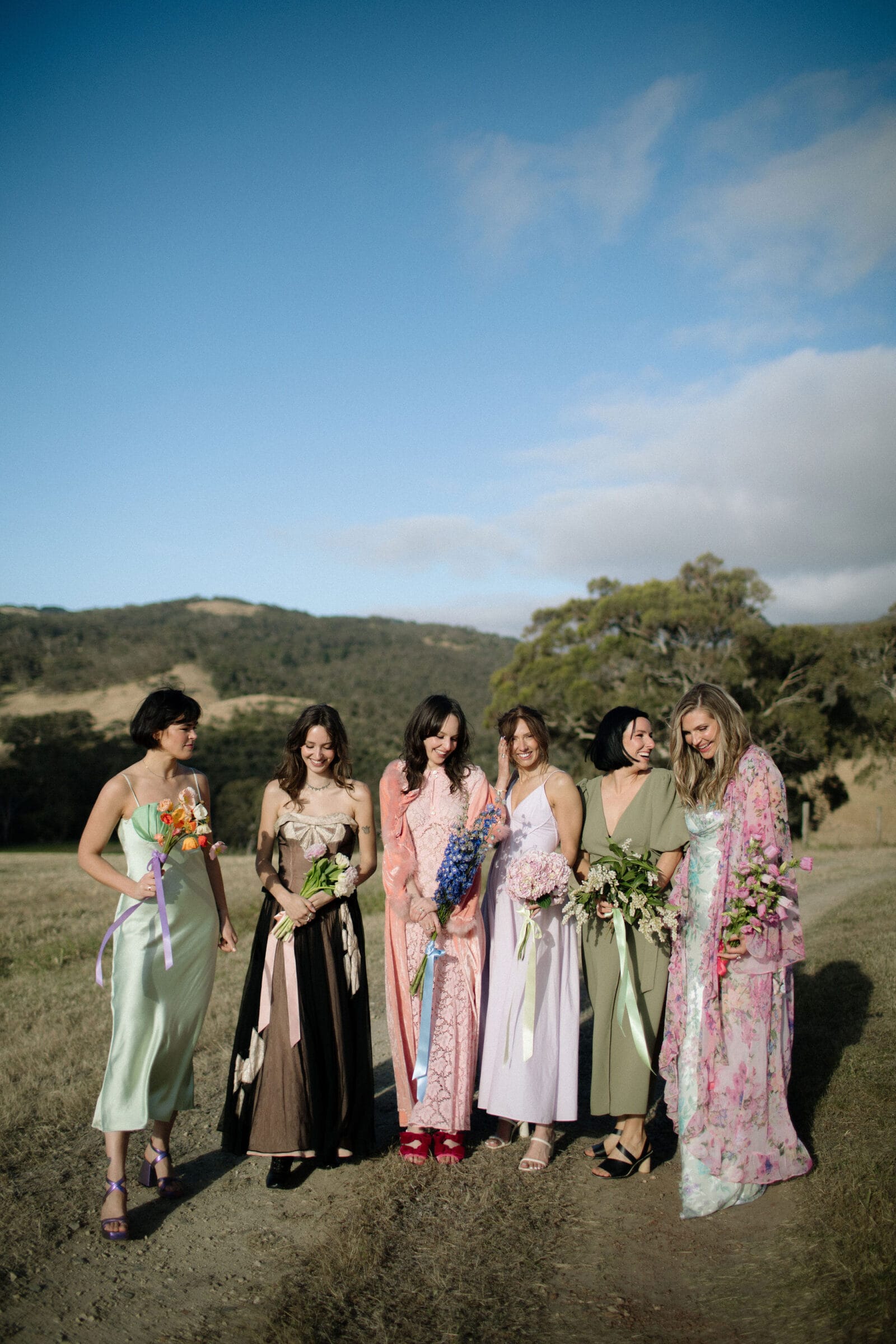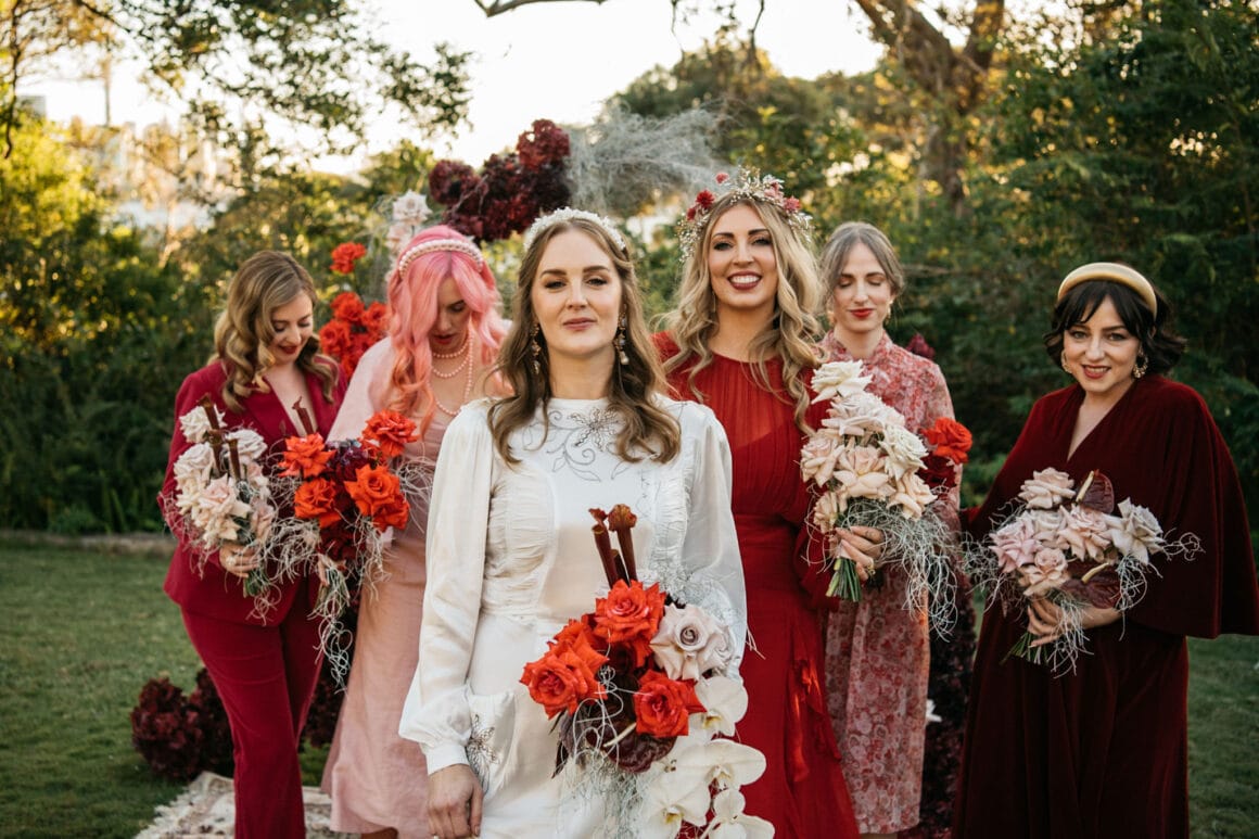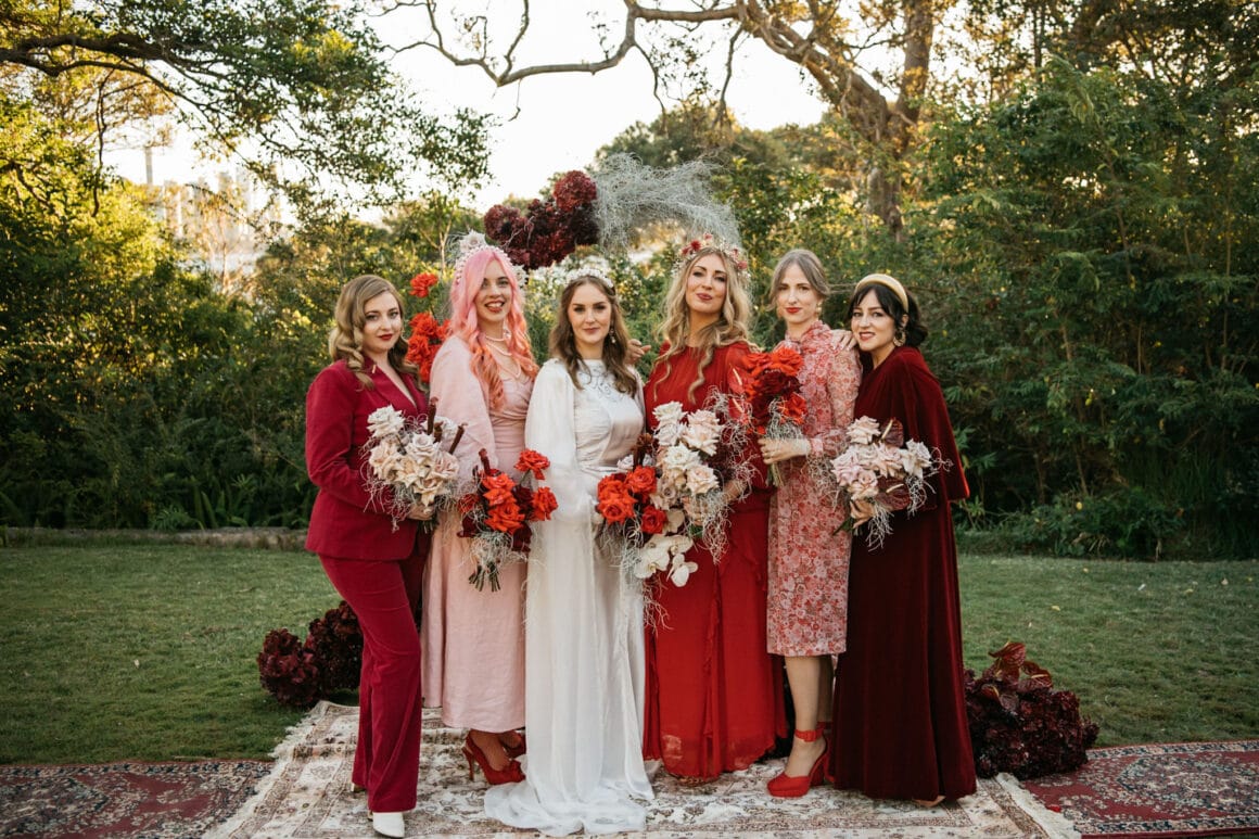 So, to help make your planning journey a little easier (that is our number-one priority, afterall), we’ve gone and rounded up some of the most stylish, unique, effortlessly elegant, cool-AF wedding party looks we’ve come across in recent times. As you’ll see once you start your scroll, mismatched dresses in varying shades and fabrics is still all the rage, as is colour, colour and more colour (here. for. it!) We’re seriously swooning over those Alemais frocks above snapped by Elsa Campbell.