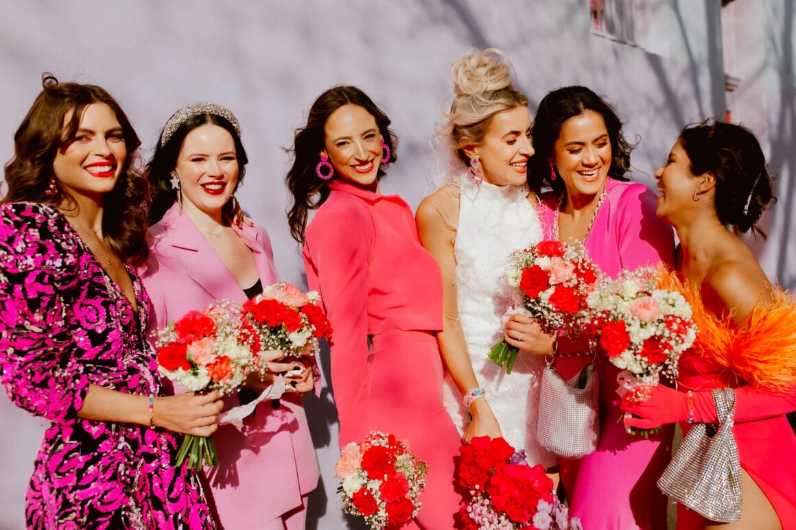 RED. HOT. is how we’d best describe this epic bridal party. All dressed in their own fave outfits, these ladies fully embraced the ‘2am Vegas’ meets ‘not-a-wedding’ theme, and you better believe we are SO here for it. Take note, friends!