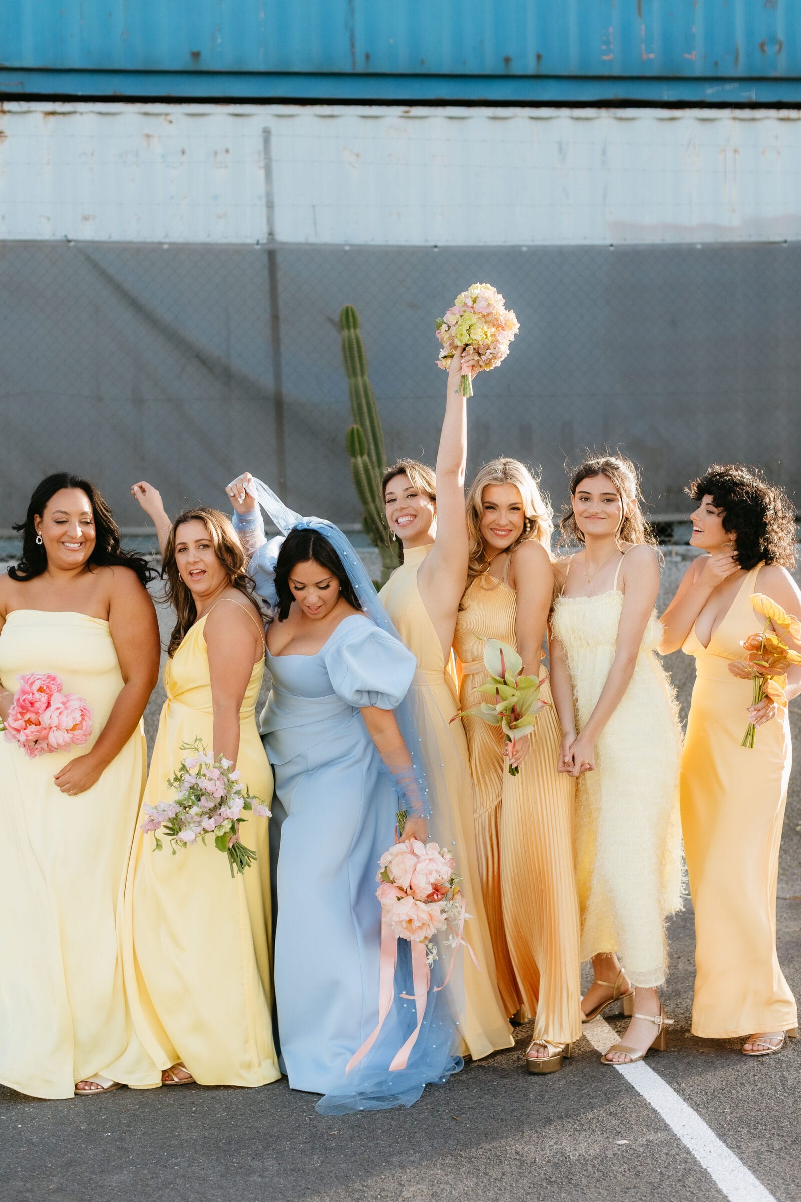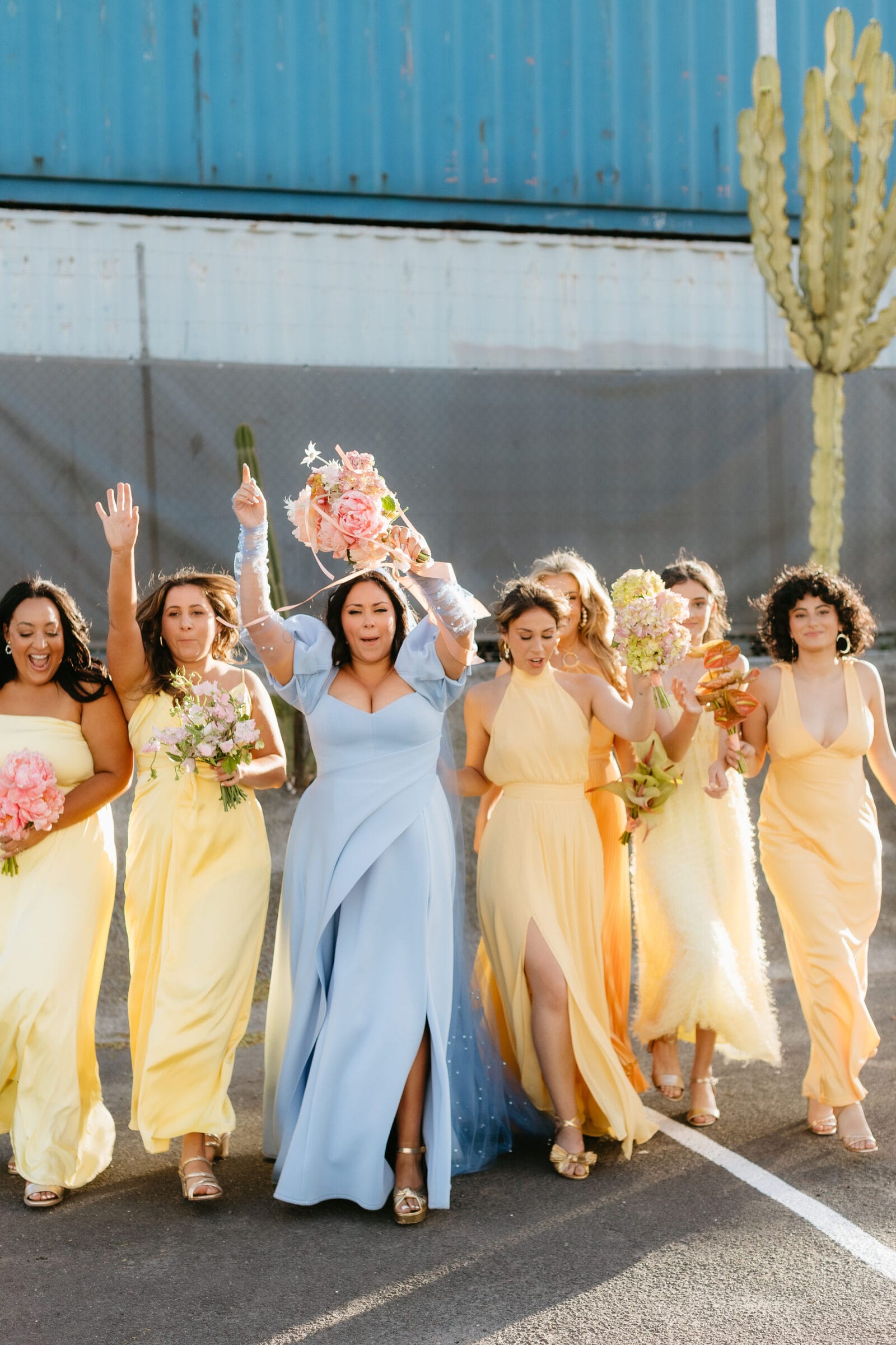 It wasn’t just the bright and bold dresses that made this bridal party one of the best, they were also a whole load of fun. “After the ceremony, our photographer Jackson took us and the wedding party on an adventure to take some photos. We had pre-arranged for one of the bridesmaids, Priya, to give the group a ‘half-time speech’ prior to entering the reception. We were blown away by Priya breaking out into a freestyle rap about us. Jackson captured the moment perfectly!” See it all here.