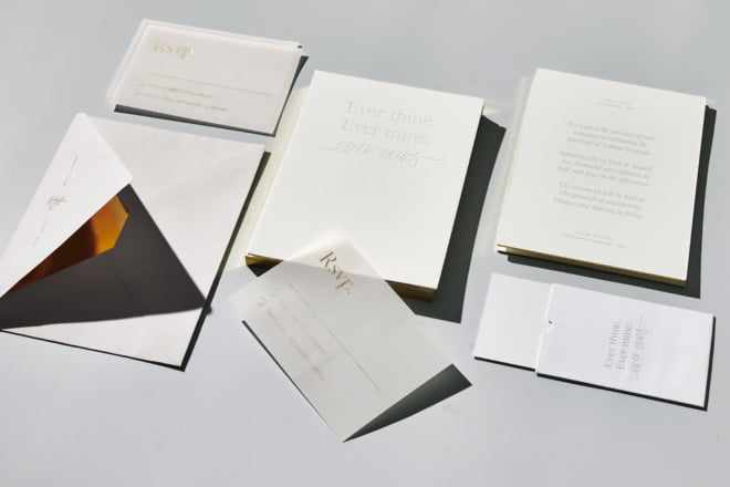 The love is felt from start to finish when it comes to this collection- a collaboration between you and the brand, that allows you to create customised wedding invitations in their minimalist style, with chic foil stamping techniques used to accent the quality paper stock they are printed on. The end result is an artwork within itself- one we wouldn’t be surprised to see on display along with your wedding photos post-nuptials.