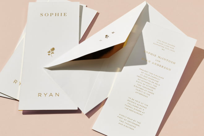 Scroll down for a pretty preview of what you can create, and cue all of the compliments when your invites go out. Prices start at $2200 and they are currently taking bookings for early June delivery, so get in quick.