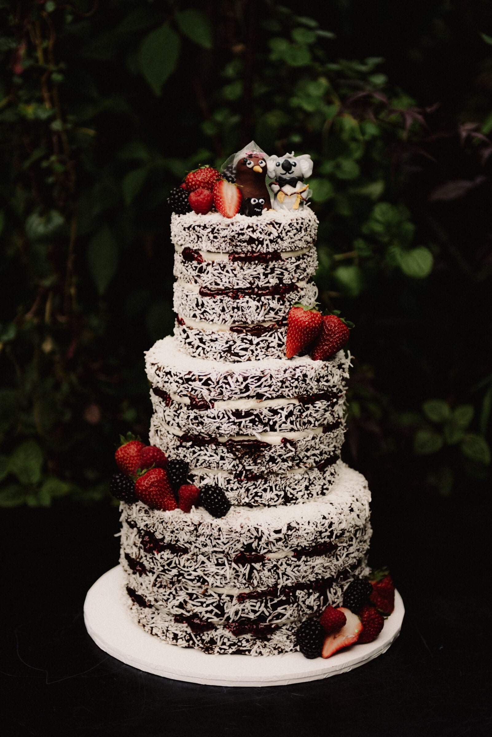 You’ll find inspo for cake toppers, dreamy colour combos and florals for days. If ‘more is more’ is the kind of vibe you subscribe to, you’re bound to find Stacey Brewer Cake’s fantasy above a real winner. A lover of lamingtons? Take a peep at Miss Ladybird Cake’s creation below.
