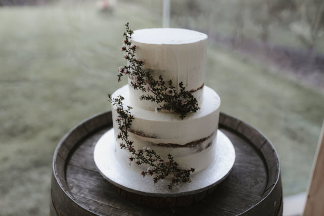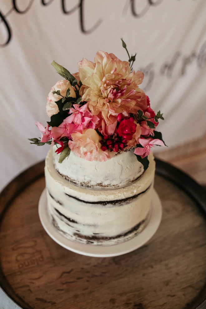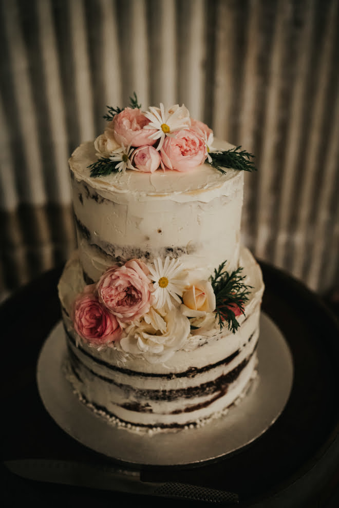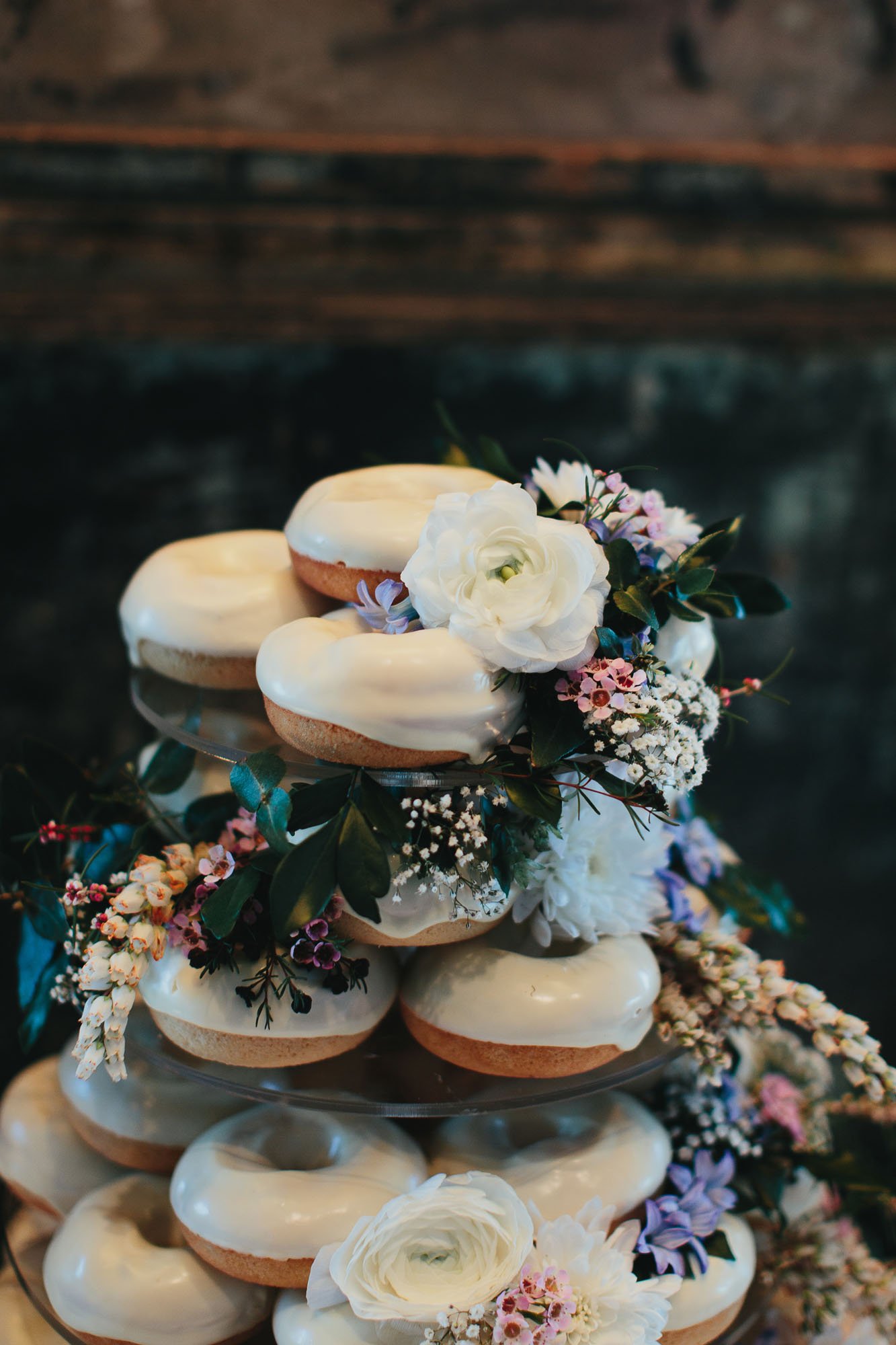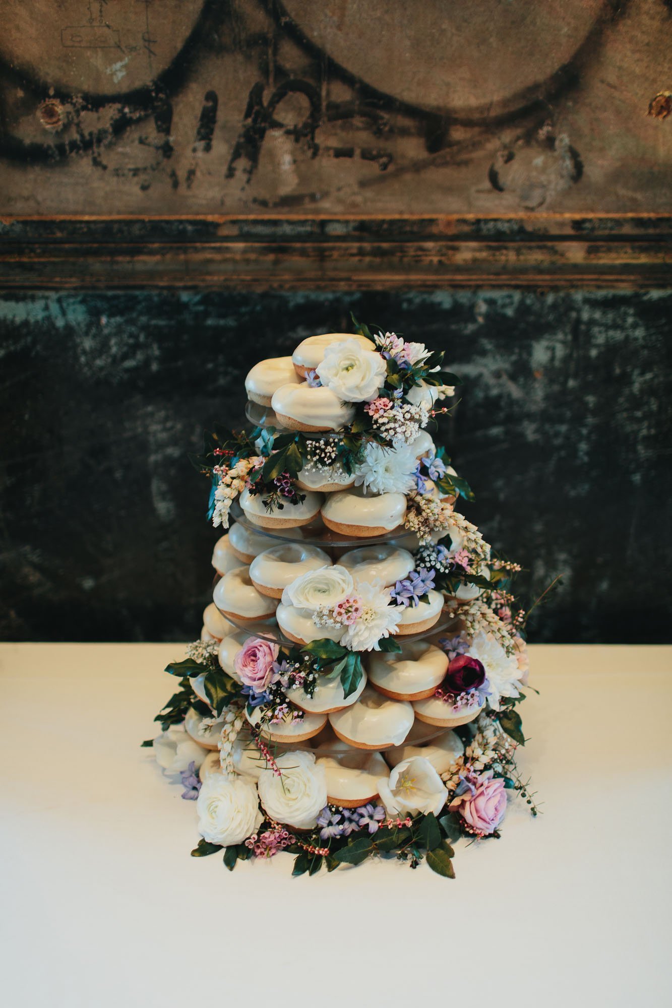 Not only is cutting the cake a sweet photo opportunity (see what we did there?) but your dessert can also be an edible centrepiece that contributes to the overall vibe and decor on the day by simply just sitting there. Just check out the spectacular two tiered naked cake by The Pear Blossom below complete with Art City Donuts.