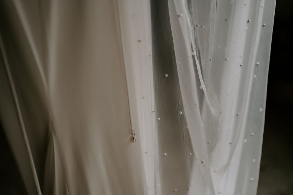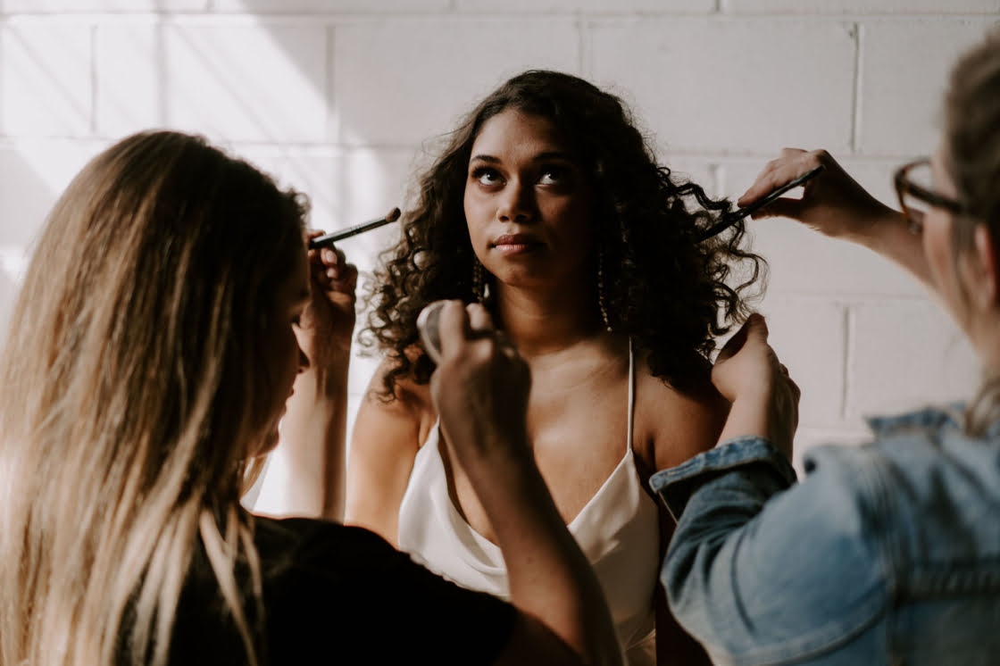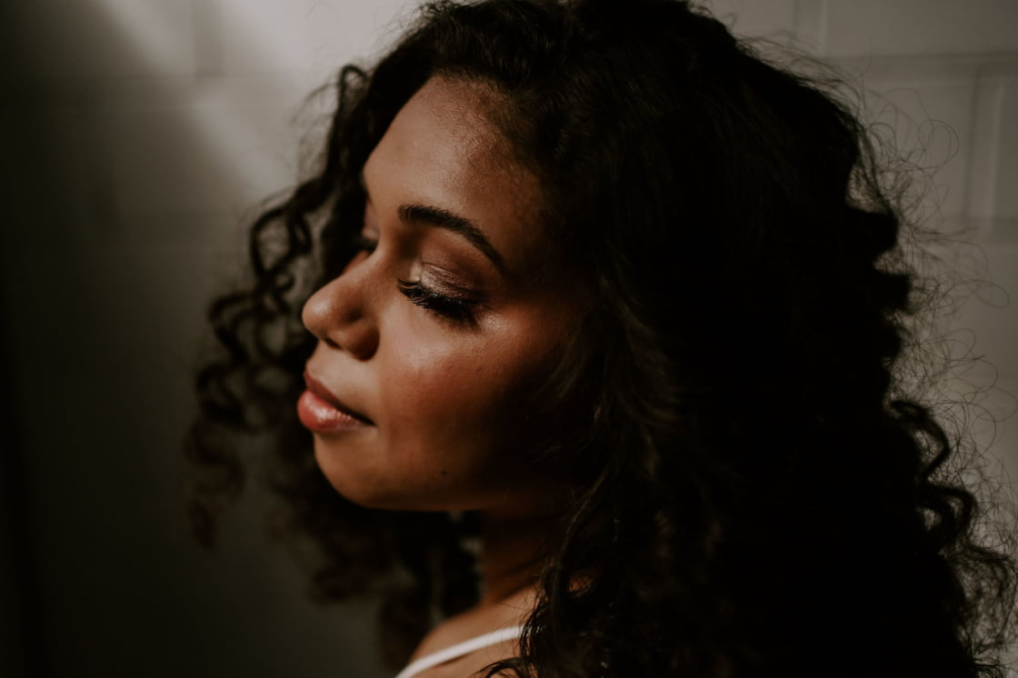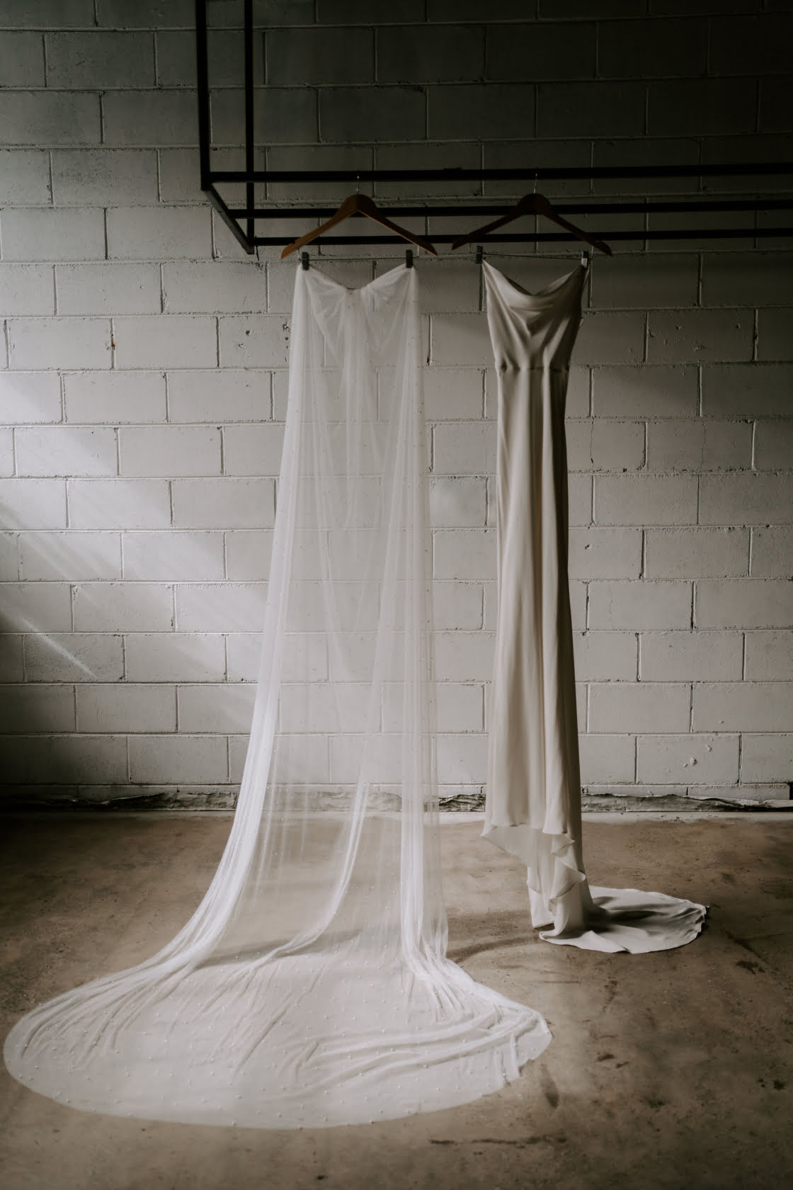 One of our fave photographers in the biz, Fox & Kin, is responsible for the moody captures. On her inspo from behind the lens, she notes, “The palette was clean and monochromatic and we played between the lines of drama and softness. Our model, Coffs local Shaz Mercy, embraced her fierce femininity in the Grace Loves Lace Honey Silk Gown with Pearly Long Veil. The hair and makeup highlighted her naturally glowing skin and wild curls.”