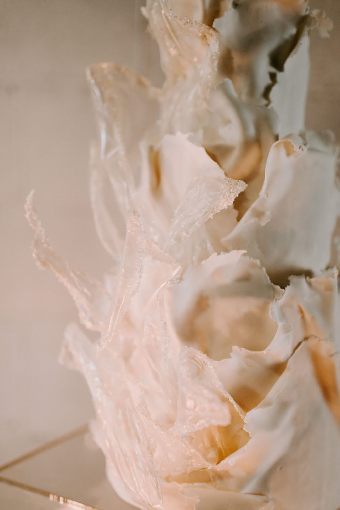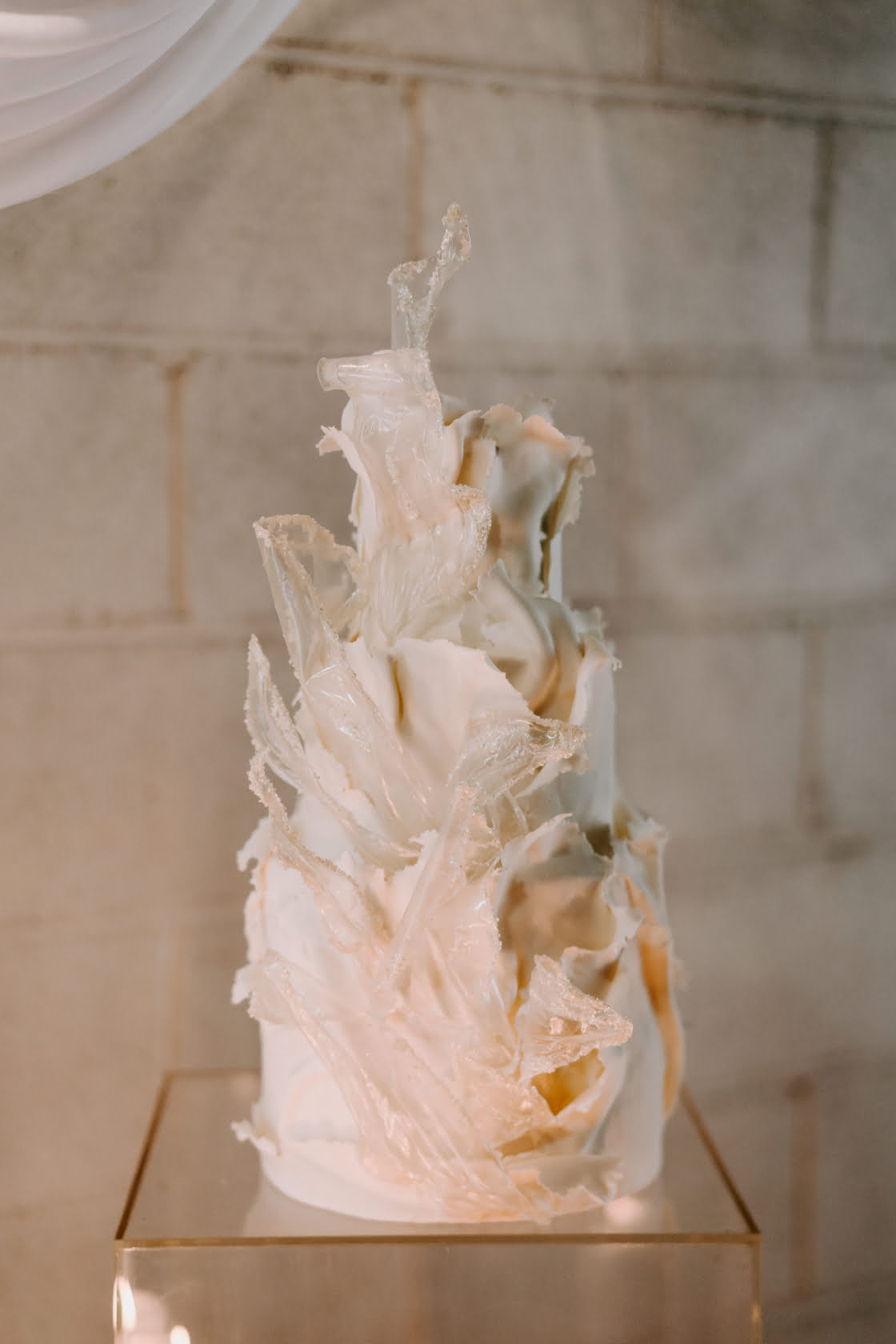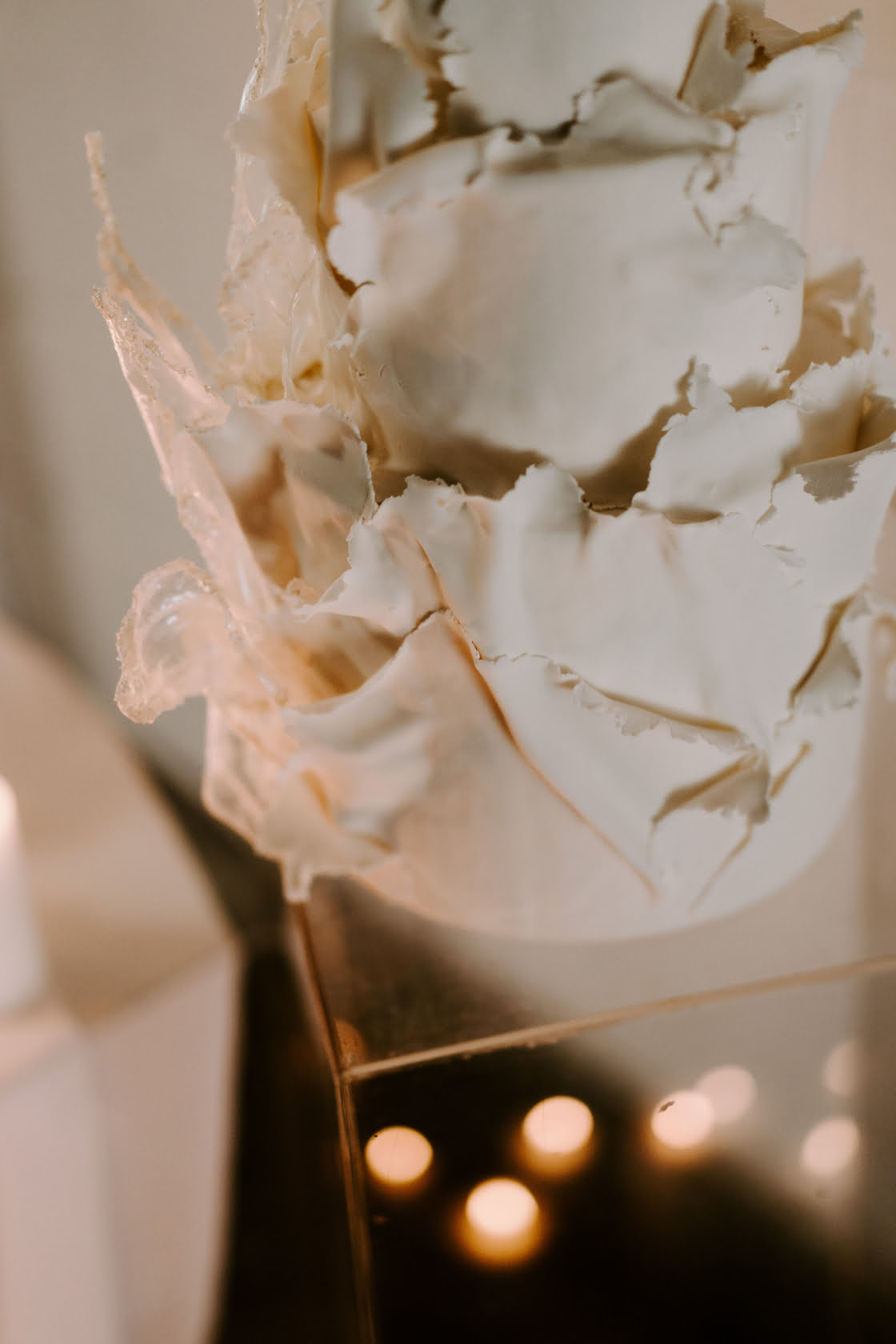 You’ll find equally lush layers to the cake, stationery and florals that prove an absence of colour leaves space to go wild with shapes, shadows, texture and movement – keeping things fun, creative and deliciously monochrome.