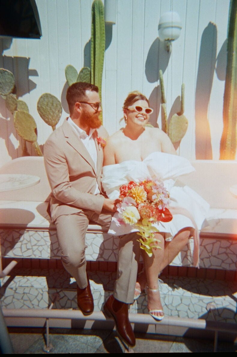 Creating this dreamy Palm Springs-inspired concept involved vibrant colour, modern boho vibes, a darling retro space at The Longueville Hotel, and, of course, a rockstar team of Sydney vendors. As for the aesthetic, it was as sharp and edgy as a cactus! Photography and creative direction was led by Gillian Keough, who had this to say, “In this alternative world Harry and Taylor had a beautiful and intimate elopement in a cactus garden before heading across to their favourite spot for a margarita where their nearest and dearest arrived to celebrate with a boozy, long lunch. It was incredible to pull together such a fun photoshoot with so many talented female business owners.” Strap in to hear how it all came together from the team who made the magic…