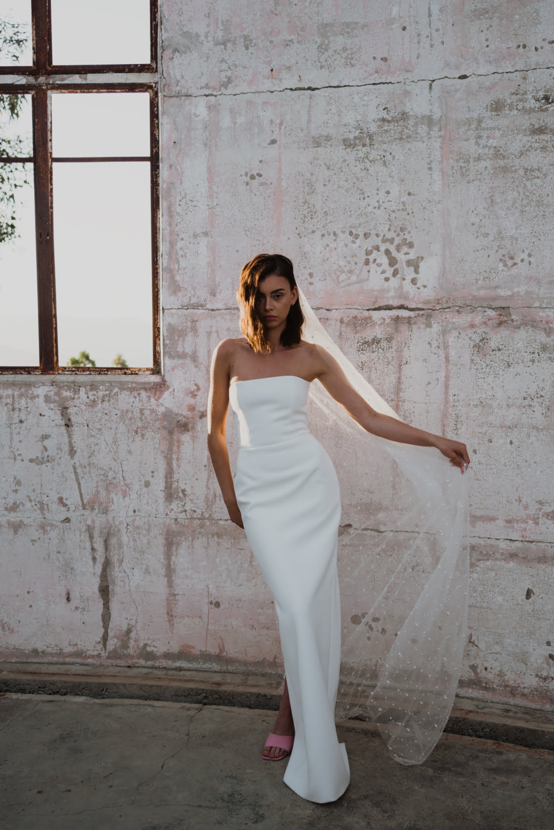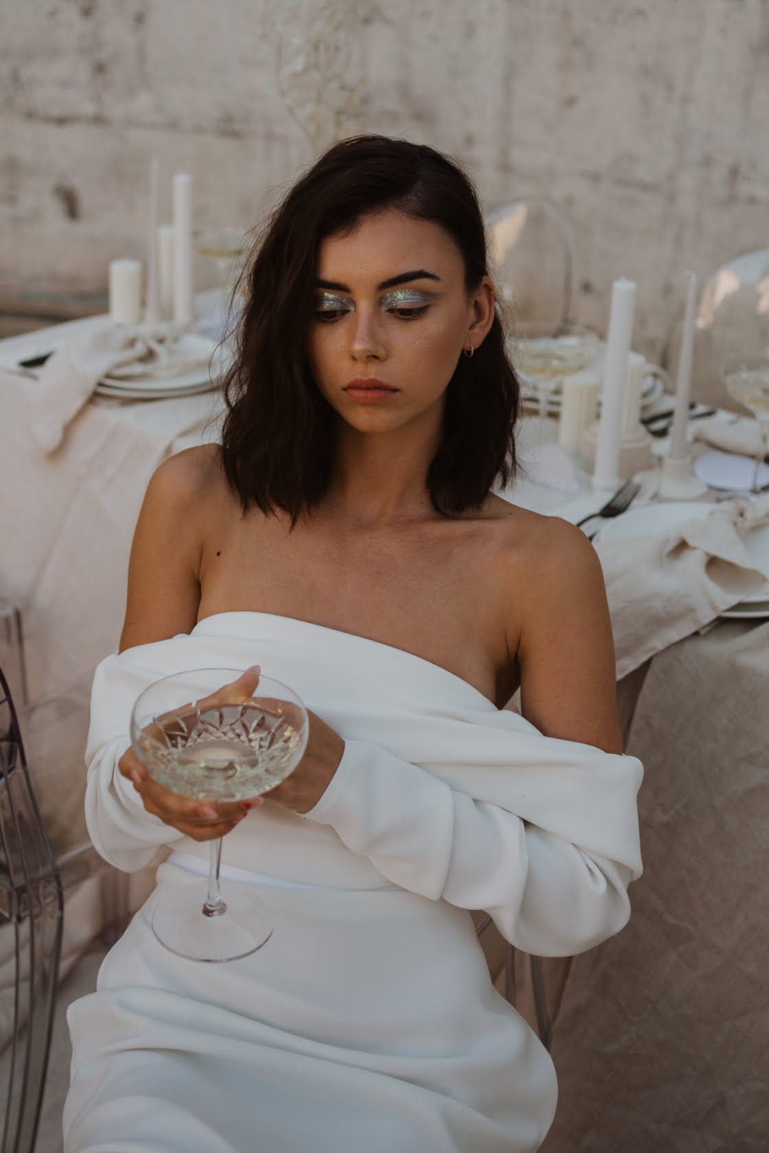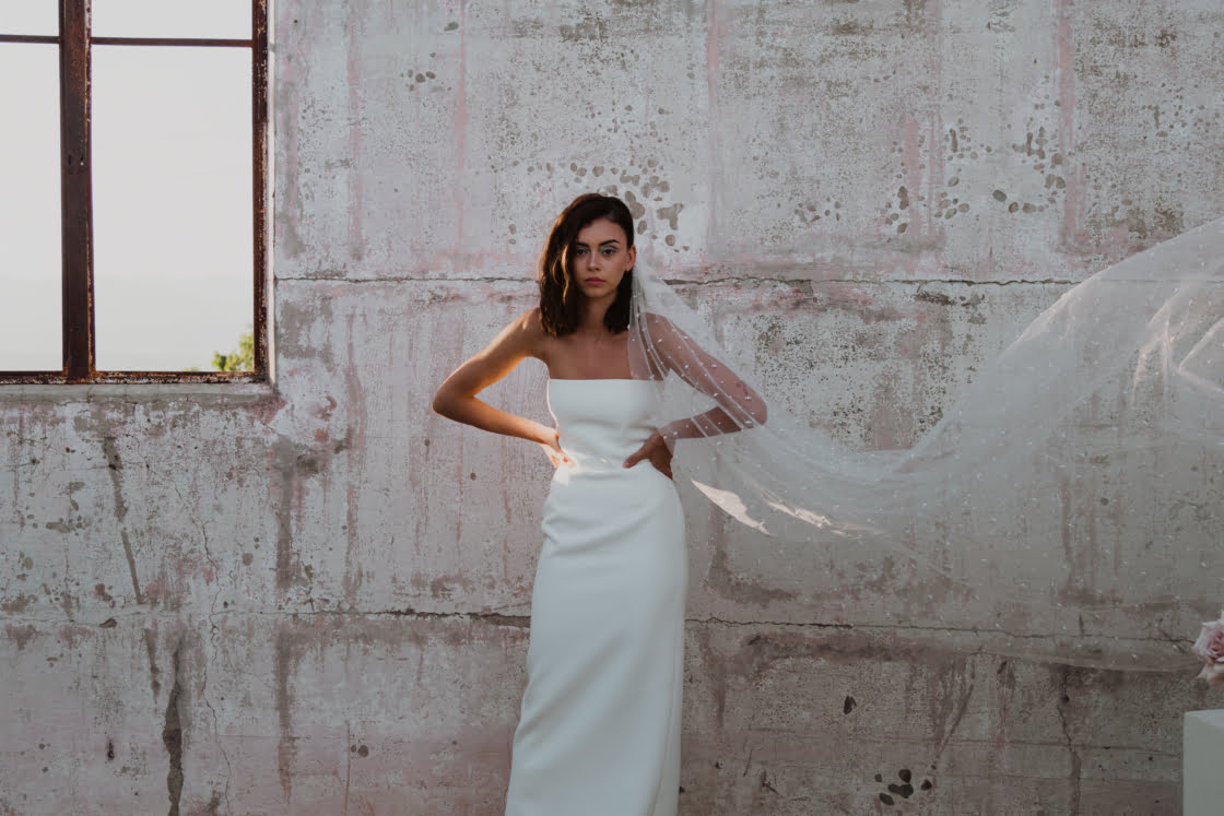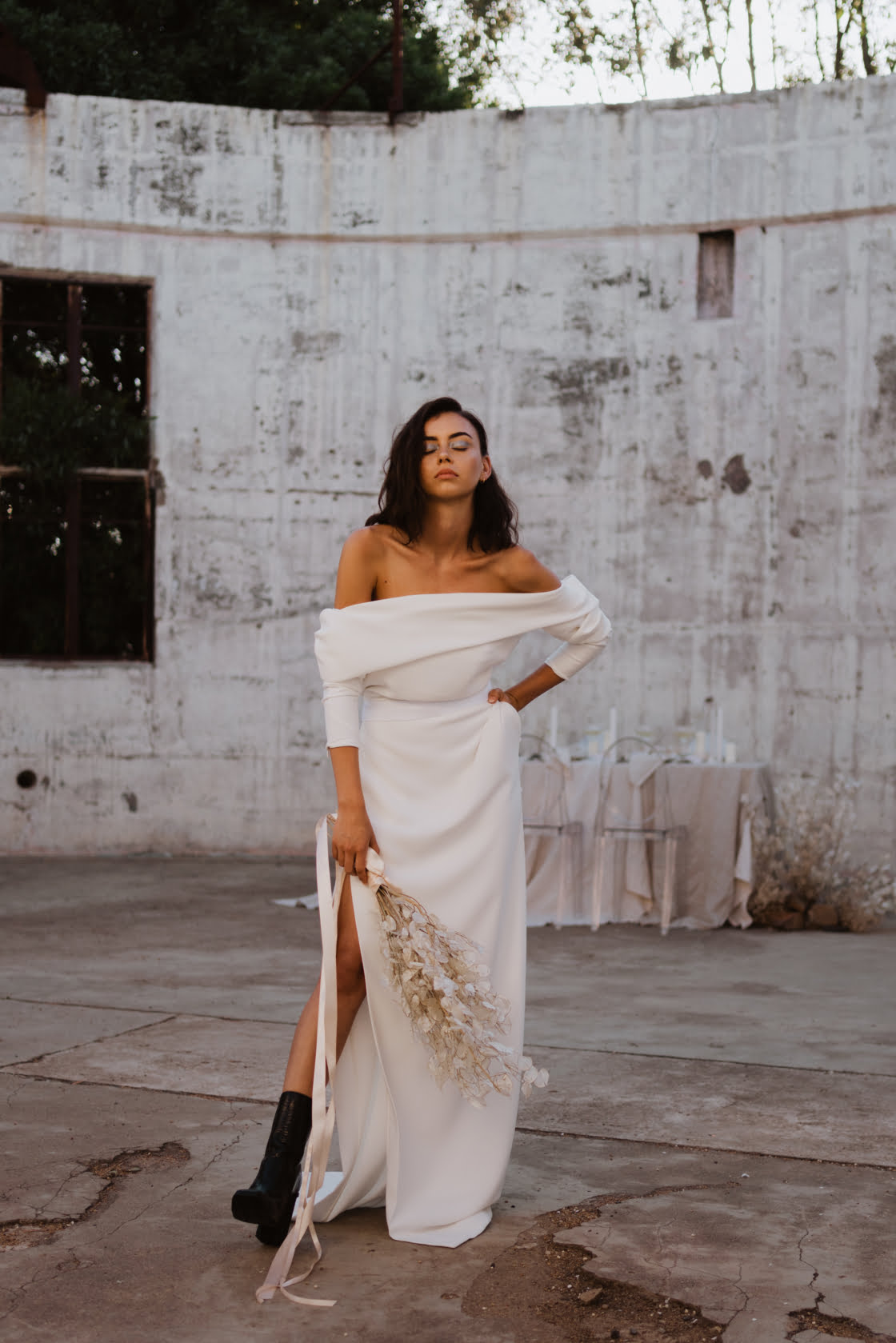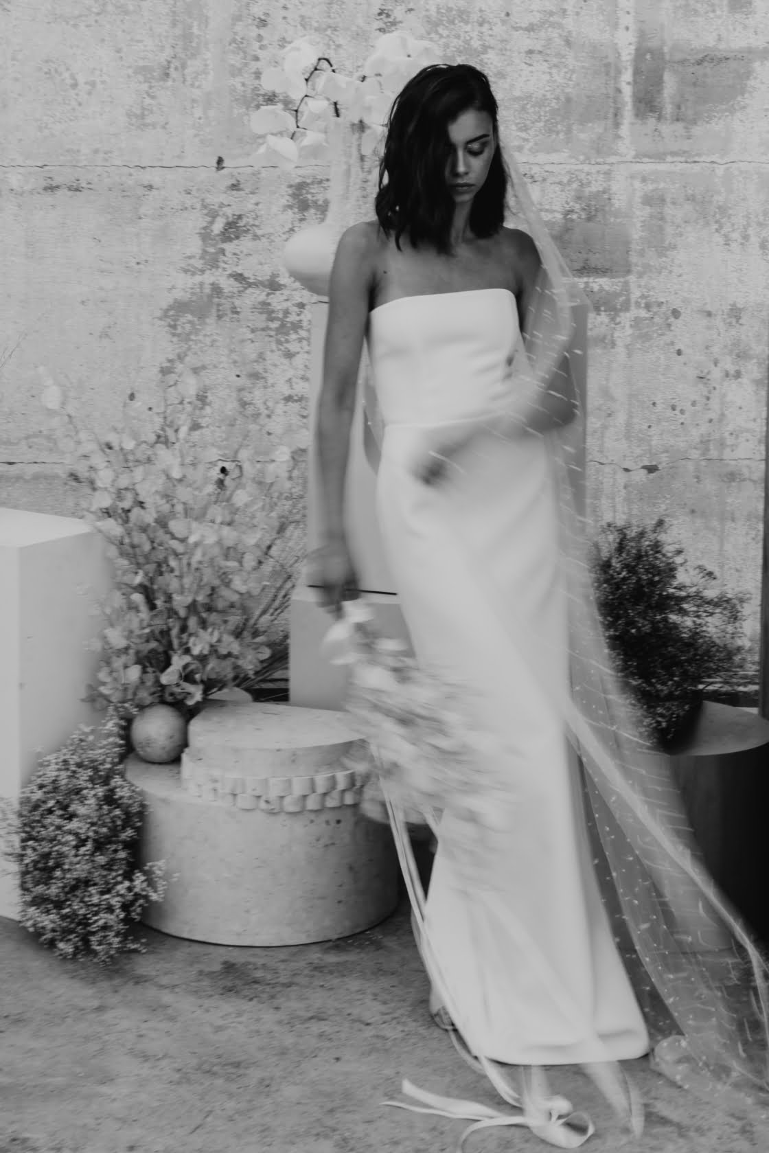As for the fierce bridal looks, you’ve got Canberra-based concept store Mrs Fray to thank. On their choice of pieces, they note, “We opted for sharp, chic and strong lines in gowns by Mariam Seddiq paired with a luxurious pearl veil by Prea James Bridal. Always one’s for the unexpected, we also featured the fluid and understated BB05 gown from London based Bon Bridé.” Finished off with relaxed locks by Kate Lily Dressing Hair and we’re obsessed.