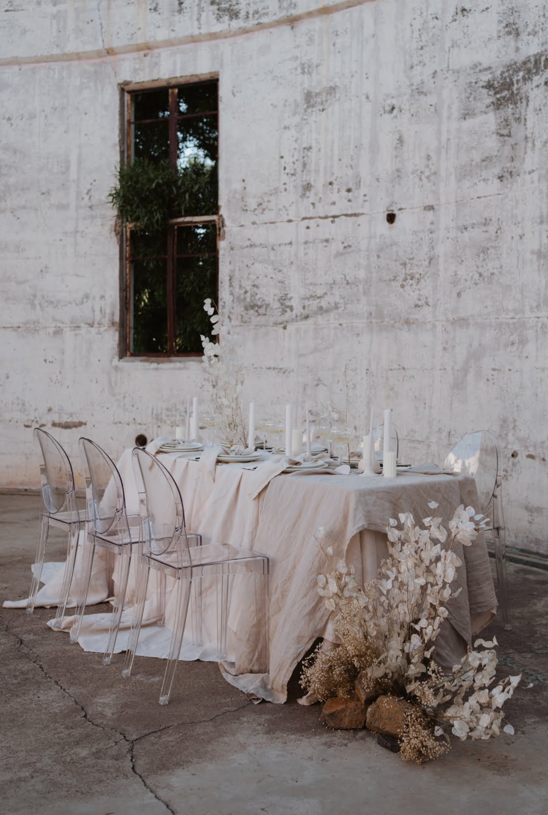Welcome to our industrial-luxe fantasy come to life. Event styling legends Pia & Jade never fail to deliver inspo when we need it most and this chic shoot brimming with texture is no exception. You’ll find oodles of linen, both dried and fresh blooms and plenty of mood, all captured by photographer Lauren Sutton. In fact, we loved this shoot so much we published it in Issue 33 of Hello May (available for purchase here).