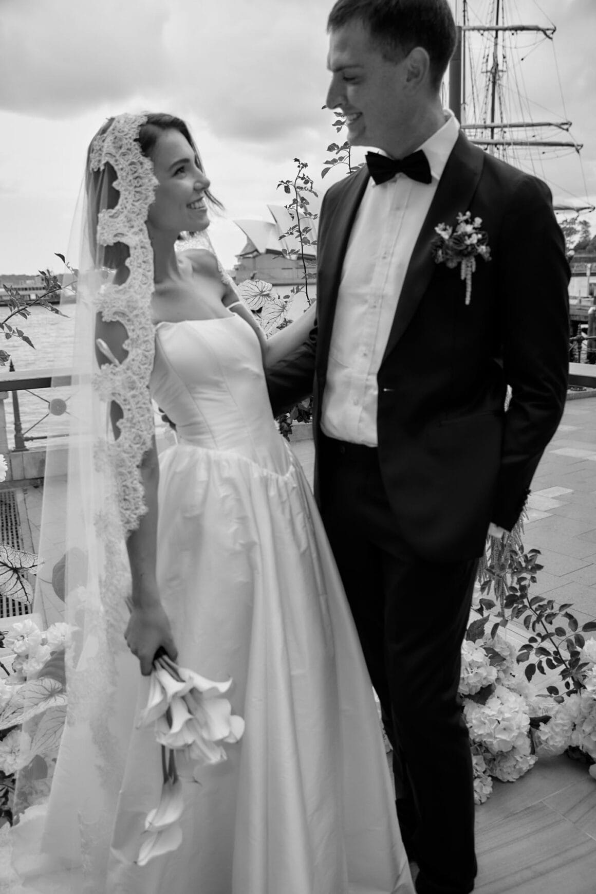 It was a wildly beautiful day working alongside some of the best in the biz, and the result is pure magic. From modern curved tablescapes to fresh and lush florals, and that quintessential Sydney view from The Bridal Suite and beyond, this Park Hyatt setting is off-the-charts good! Of course no wedding shoot is complete without a few outfit changes, which came courtesy of our friends at Karen Willis Holmes, Lola Varma, Saving Grace and M.J. Bale with seriously-cool veils and accessories from Dove Grey Bridal and shoes from Bared Footwear.