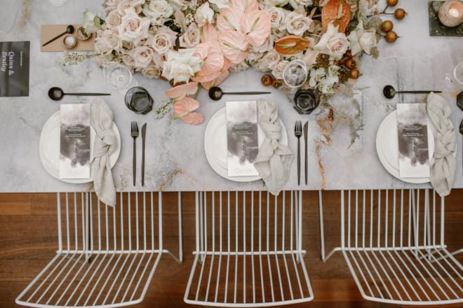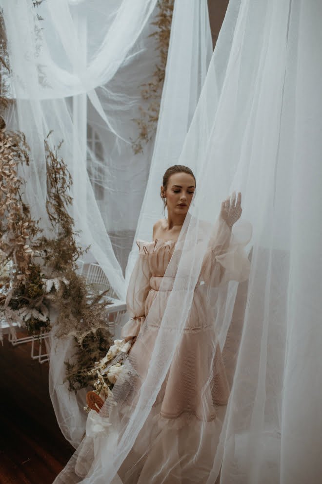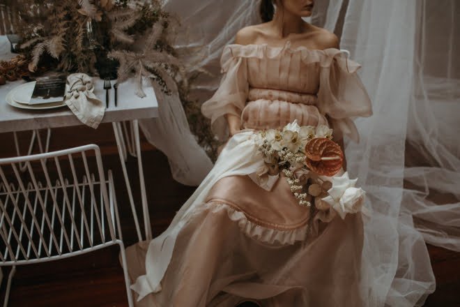 Do you have a second to stop? This dreamy new fashion editorial deserves it, folks. Trust us and take a minute to scroll through. You’ll find all the romantic feels, a stunning (not to mention particularly whimsical) Maevana gown, pretty pastel blooms by Natural Art Flowers and a table setting to die for… And it’s all thanks to the gorgeous collaboration between stylist, Tiffany Keal Creative Studio and photographer, Natasja Kremers. We wanted to know more, so asked Tiffany for her inspiration, of course…