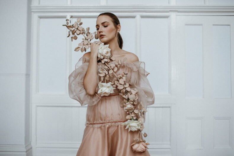Do you have a second to stop? This dreamy new fashion editorial deserves it, folks. Trust us and take a minute to scroll through. You’ll find all the romantic feels, a stunning (not to mention particularly whimsical) Maevana gown, pretty pastel blooms by Natural Art Flowers and a table setting to die for… And it’s all thanks to the gorgeous collaboration between stylist, Tiffany Keal Creative Studio and photographer, Natasja Kremers. We wanted to know more, so asked Tiffany for her inspiration, of course…