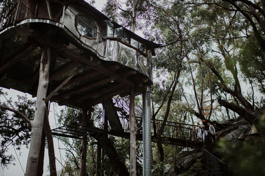 THE VENUE “We love travelling and our holidays always end up as something adventurous, such as hiking, camping, snowboarding or mountain biking. We love exploring different locations and have been going on amazing adventures since we met. We love hiking and the different feel of the mountains compared to the coast, so we chose the Blue Mountains to elope. When we came across the treehouse there were no questions, we just looked at each other and said “that’s the place”. We still can’t believe we got married in a treehouse! We had actually planned to get married at a lookout 100m from the treehouse, but on the day it was pouring rain and so our backup was to get married in the treehouse itself. We are actually so glad it rained, the treehouse was spectacular.”