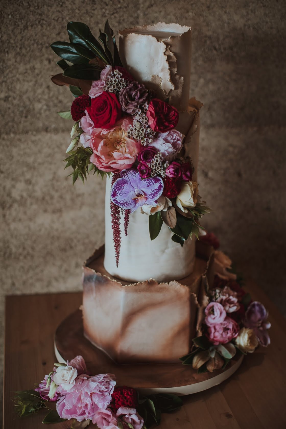 FAVOURITE DETAILS “Aside from our venue being breathtaking, our flowers really stole the show. Estelle with The French Petal made my floral dreams come to life. I am pretty obsessed with coral peonies so when I walked into Earthhouse, our hanging installations nearly brought me to tears. The arbour installation made our ceremony set-up look incredible against our very favourite feature – the fig tree – whilst the understated table styling played focus to our stunning hanging floral arrangements. Our cake was also incredible and our ink gin cocktails and post-dinner espresso martinis went down a treat and helped to keep our dance floor pumping.”