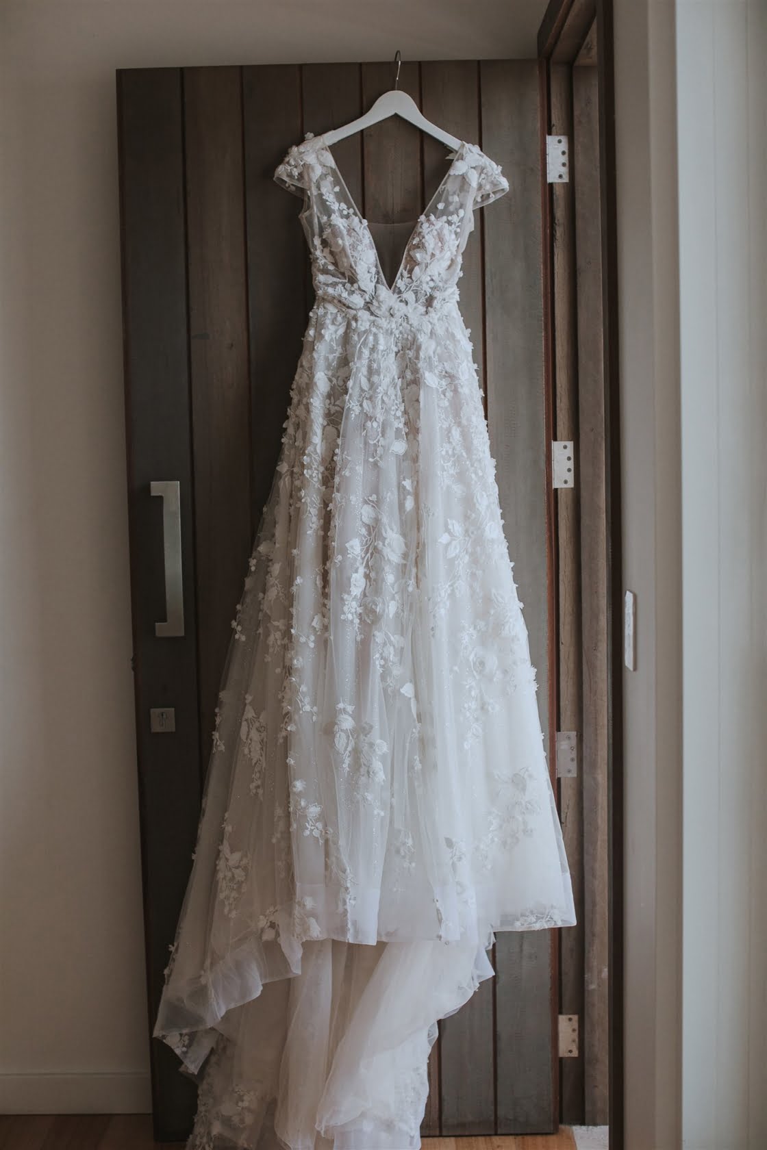 THE DRESS “I came across my dress on Instagram not long after we got engaged, but couldn’t find a retailer in Australia. Two months before the wedding, Berta was having a trunk show [in Aus], so I flew to Melbourne and went straight to the bridal store for a fitting. I knew that I had found my dream dress, but I couldn’t order the dress in time, so my mum called every retailer in the USA until she found a store that was willing to sell us their floor sample and flew it to Perth two weeks later. 40 dollars later [alterations] it fit me perfectly.”