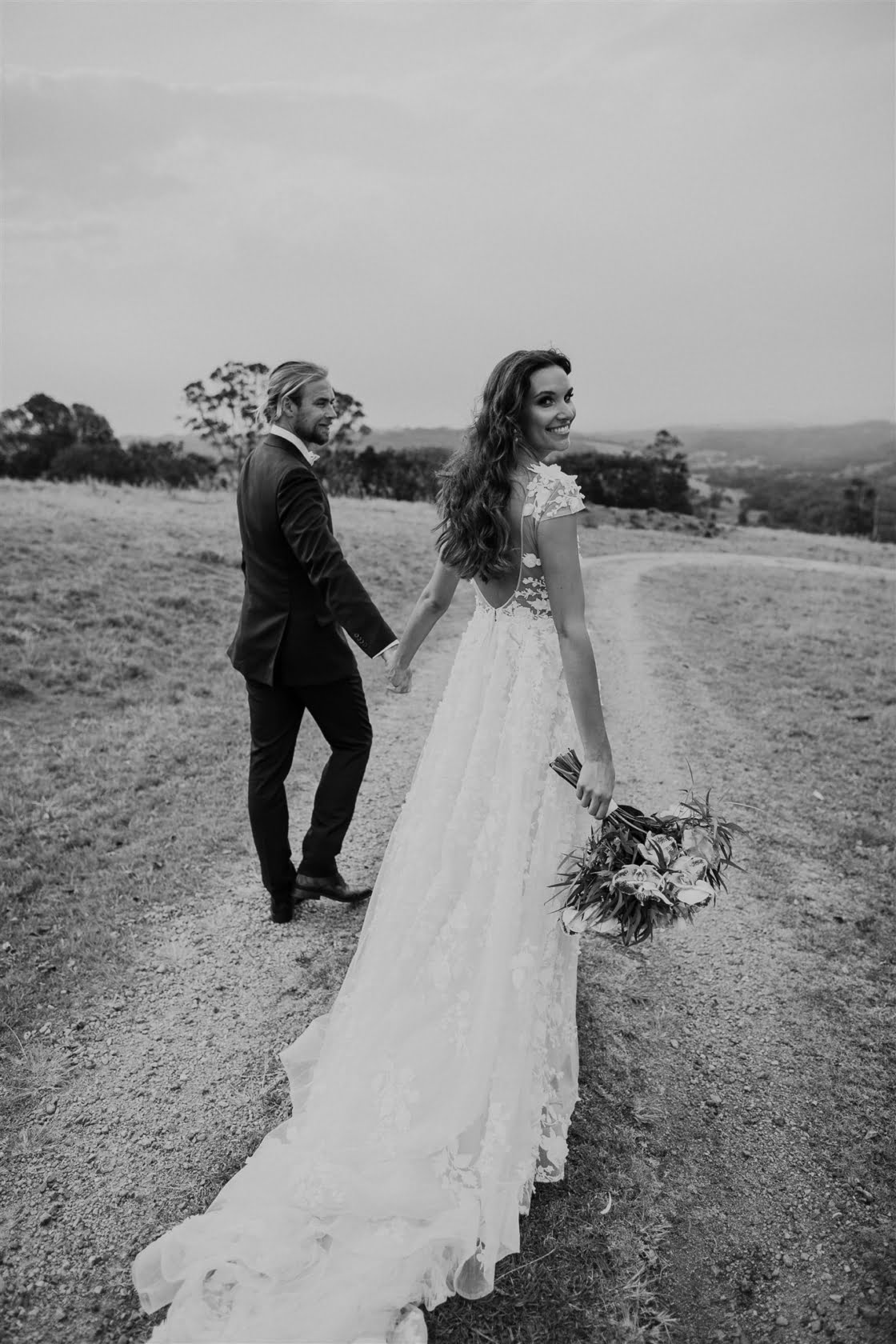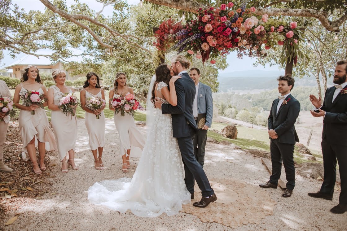 THE VENUE “With half of our guests being from the USA and half being from Australia we knew that we wanted to have a destination wedding. As soon as we arrived at Earthhouse, it just took our breath away and ticked every box. The venue honestly does not have a bad angle – the fig tree, a rustic indoor space, and an incredible view. We decided to keep our venue a secret from all of our guests so that they could share the same first look experience that we had.”