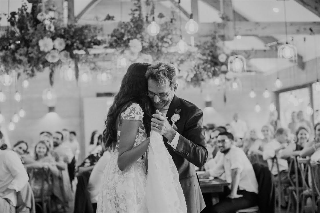 FAVOURITE DETAILS “Aside from our venue being breathtaking, our flowers really stole the show. Estelle with The French Petal made my floral dreams come to life. I am pretty obsessed with coral peonies so when I walked into Earthhouse, our hanging installations nearly brought me to tears. The arbour installation made our ceremony set-up look incredible against our very favourite feature – the fig tree – whilst the understated table styling played focus to our stunning hanging floral arrangements. Our cake was also incredible and our ink gin cocktails and post-dinner espresso martinis went down a treat and helped to keep our dance floor pumping.”