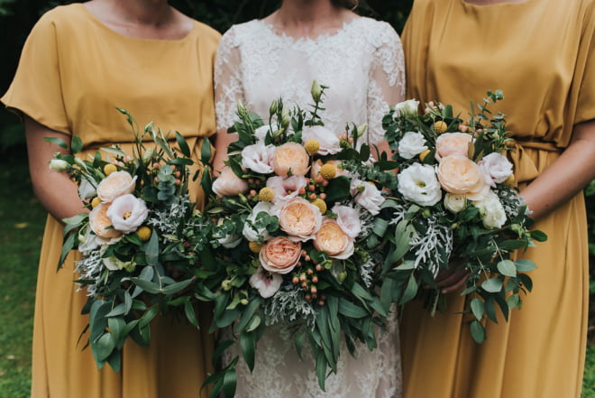 FAVOURITE DETAILS The yellow bridesmaid dresses- along with the billy buttons in my bouquet- I love yellow. I loved the flowers, my best friend Priscilla of Priscilla Naus Creative created them for us and did such an amazing job. Our bespoke rings by Sophie Divett Jewellery and the delicious fresh donuts made by the Public Catering Company.