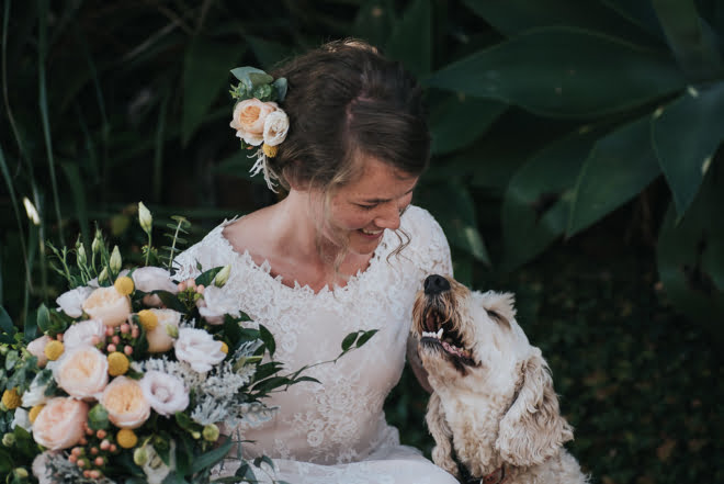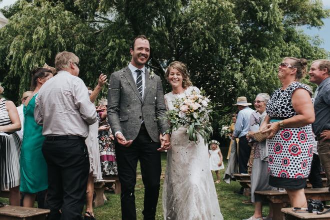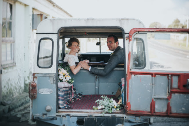 Setting the intention to keep the wedding ‘simple’, Lex and Dunc decided on “natural colours and textures, calico, wood, and greenery,” plus a delightful “pop of yellow” thanks to the bride’s love of the sunny colour. Caught on camera by Abi Hackling Photography, this New Zealand wedding was a hit- our favourite part (and the bride’s)- was the old school Land Rover used as the wedding car, adding to the rustic vibe. Scroll down to see it all.