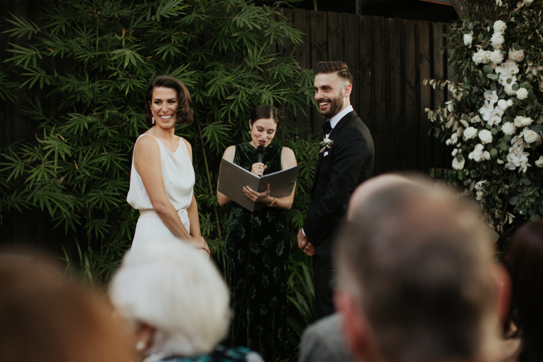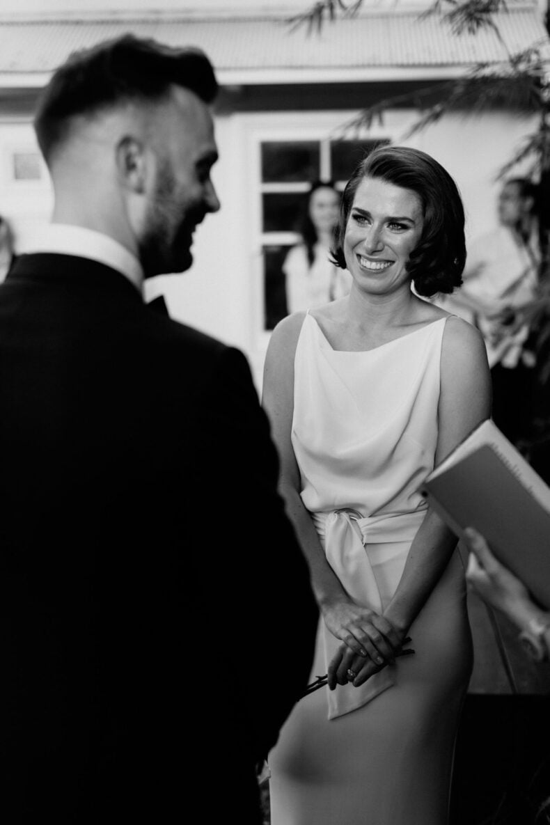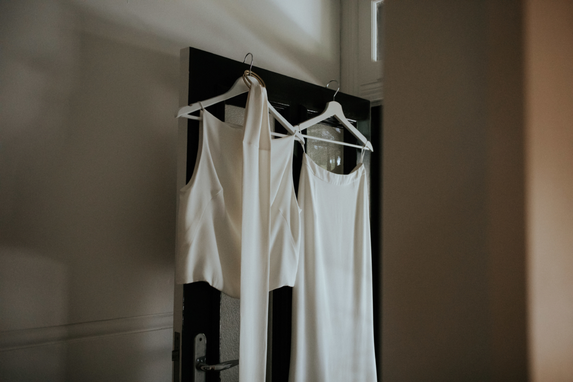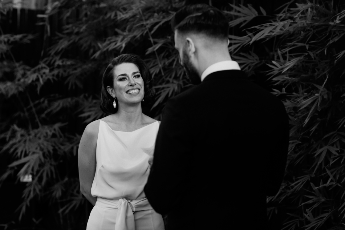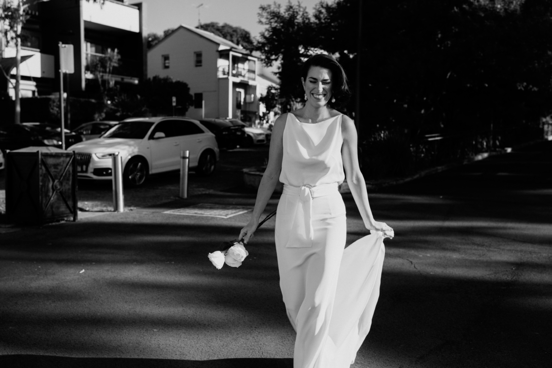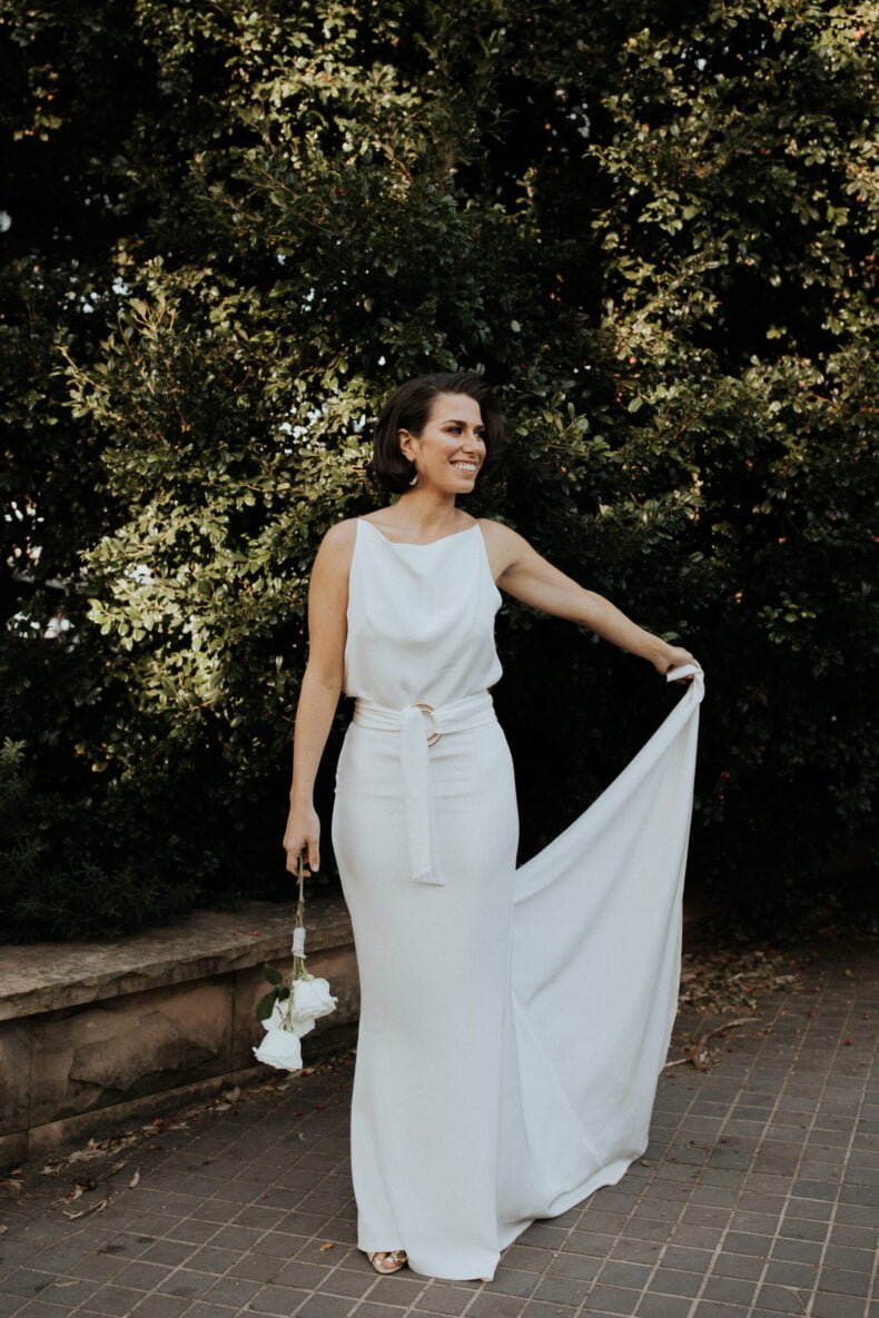 THE DRESS “Wow, dress shopping was hard! I had a good idea when I went into it, being fond of minimalism, but it’s easy to get distracted! It probably took me two months to find the right outfit. I had always loved Lola Varma right from when I started looking at dresses. I found Lola Varma through a trunk show from a bridal boutique I had been seeing for a few months. Long story short, my outfit arrived two sizes too big with only 6 weeks to go until the wedding. This is where the incredible Courtney Illfield of Lola Varma took me under her wing and generously made me a whole new outfit which arrived just in time for the big day! She was literally my guardian angel.”