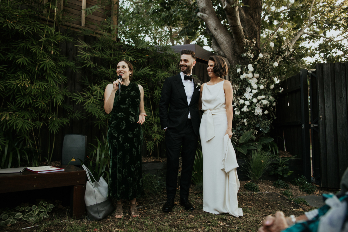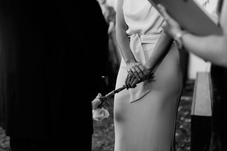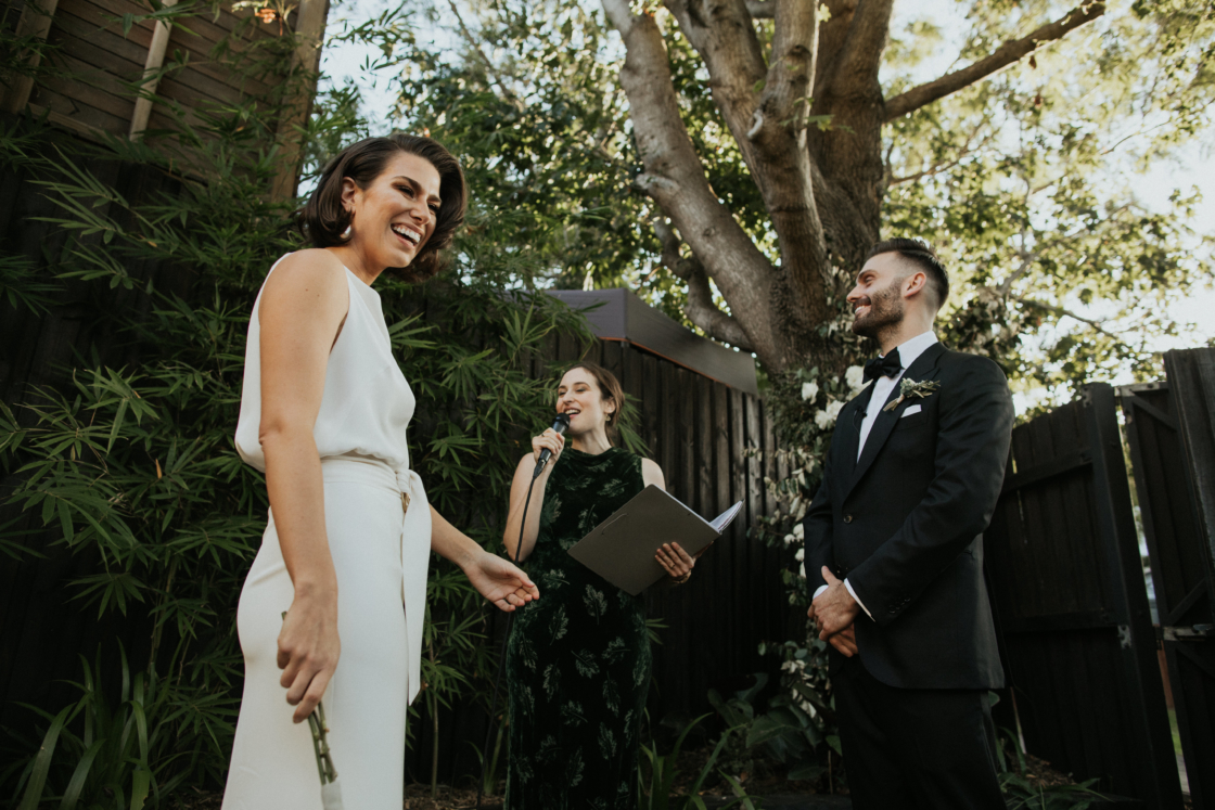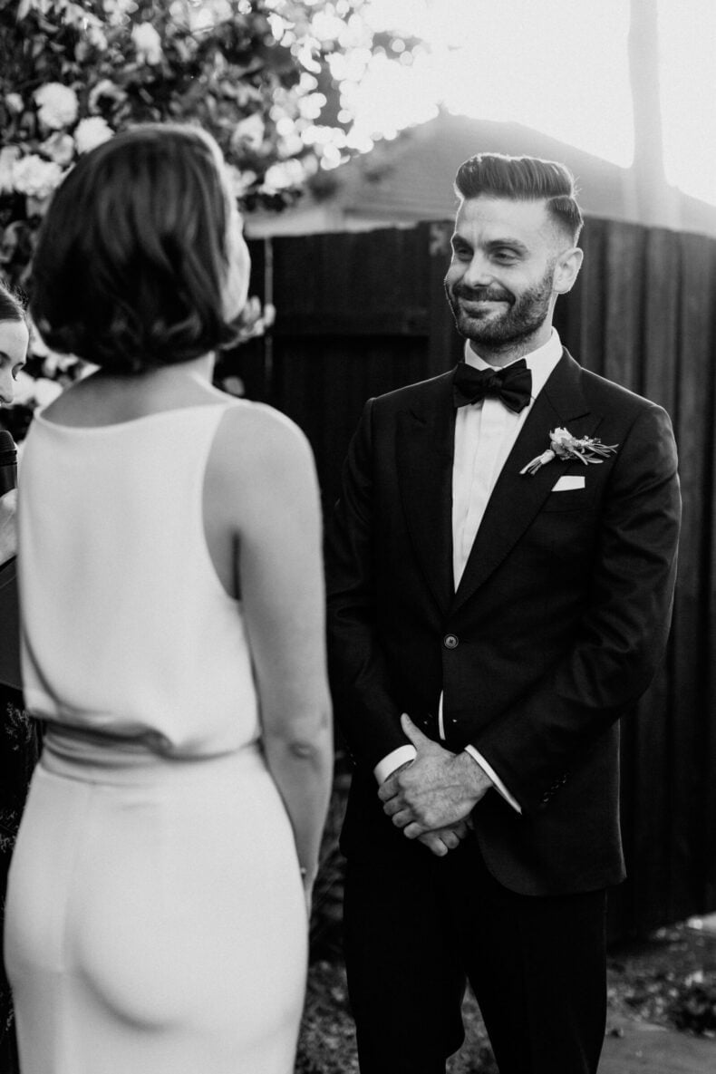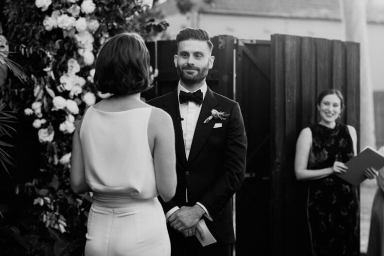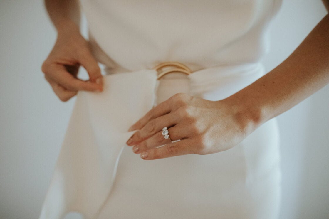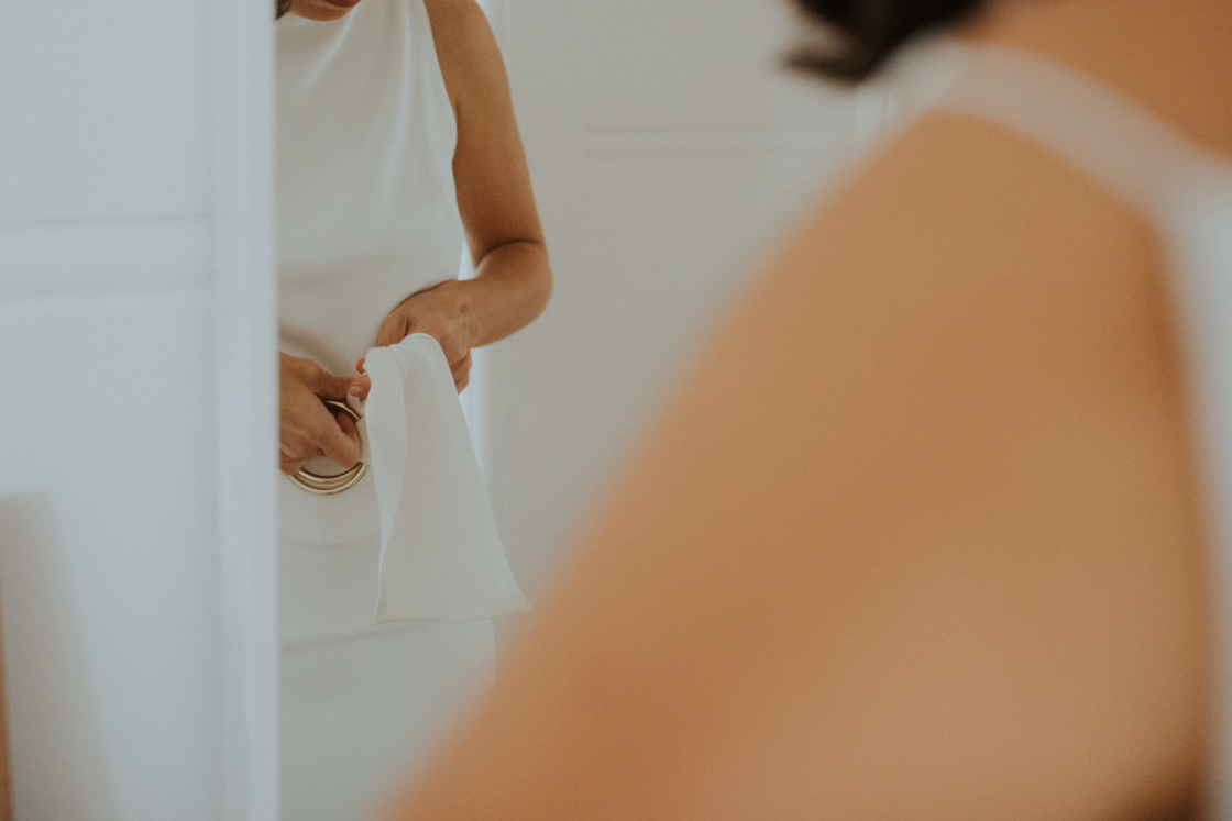 THE DRESS “Wow, dress shopping was hard! I had a good idea when I went into it, being fond of minimalism, but it’s easy to get distracted! It probably took me two months to find the right outfit. I had always loved Lola Varma right from when I started looking at dresses. I found Lola Varma through a trunk show from a bridal boutique I had been seeing for a few months. Long story short, my outfit arrived two sizes too big with only 6 weeks to go until the wedding. This is where the incredible Courtney Illfield of Lola Varma took me under her wing and generously made me a whole new outfit which arrived just in time for the big day! She was literally my guardian angel.”