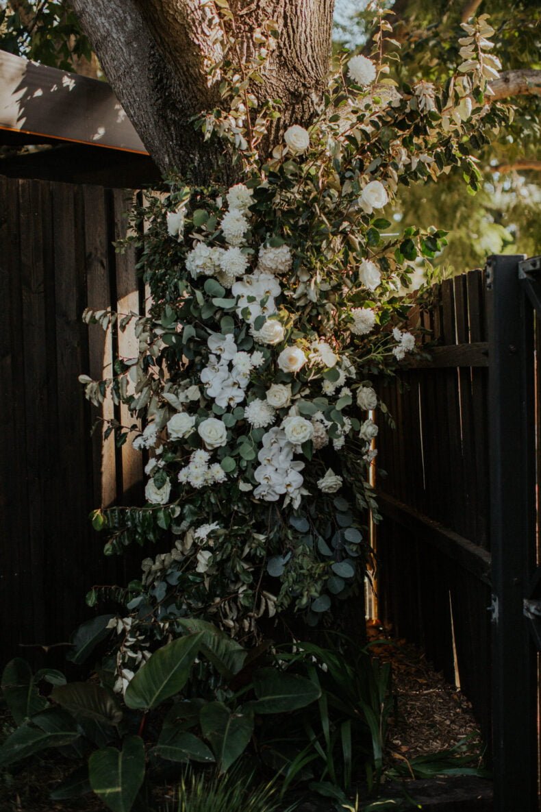 THE VIBE “We wanted everything to be elegant and minimalistic. We had a theme of whites, native greenery and hints of gold. We also wanted to make sure the wedding felt true to us. This is why it was so lovely to have the chance to have our ceremony in our own garden. It’s a memory that will live with us forever and makes it very special when we spend time out there now.”