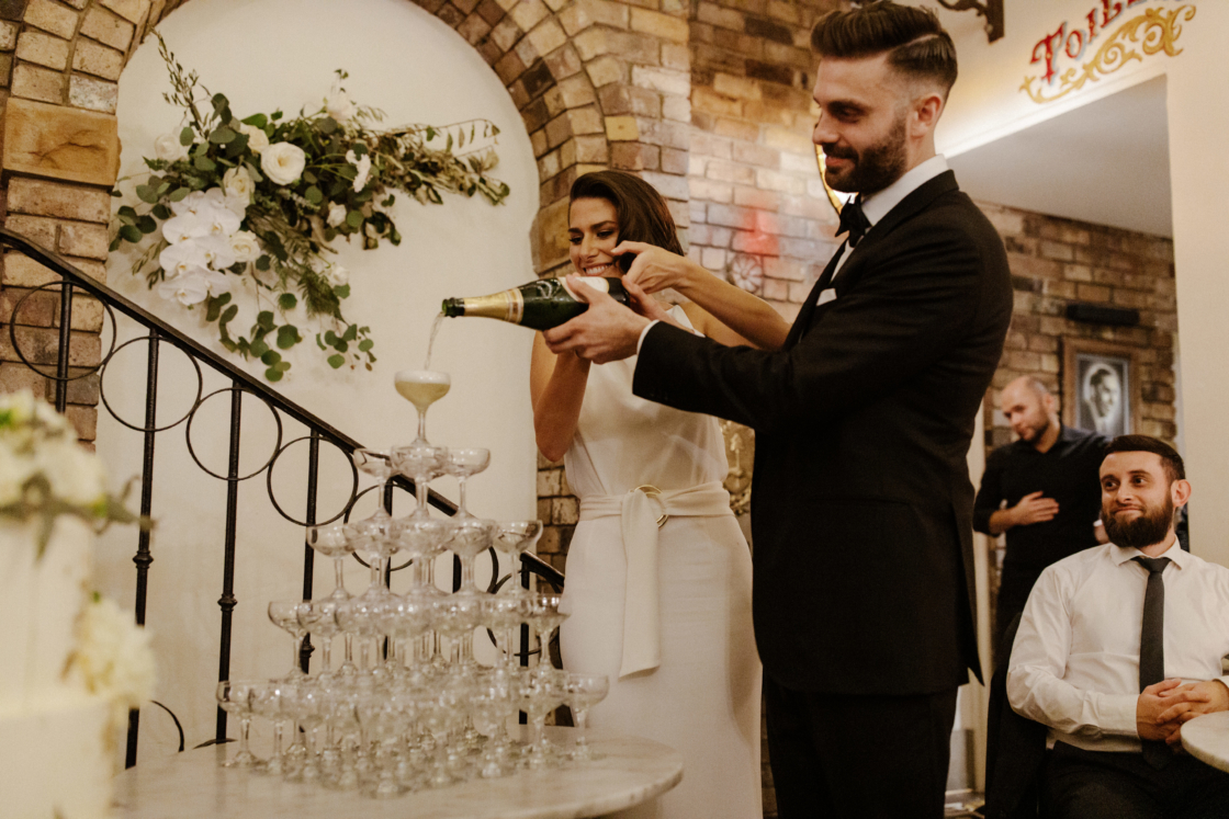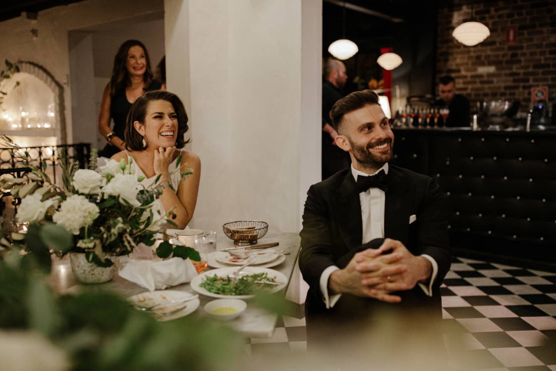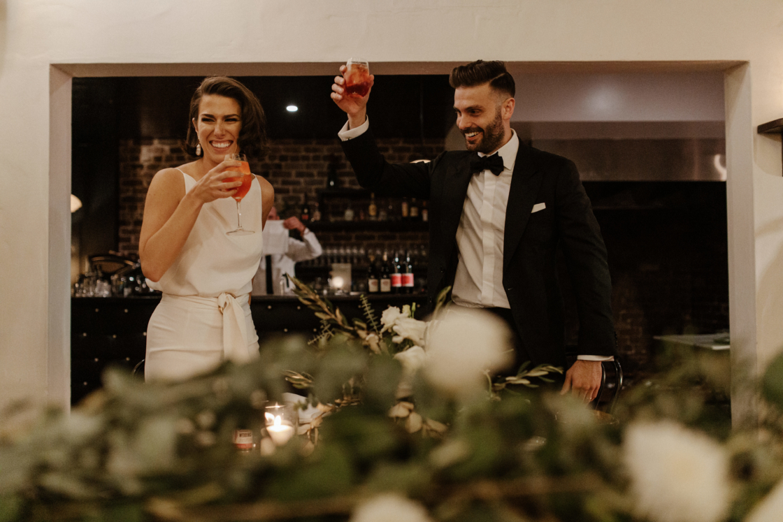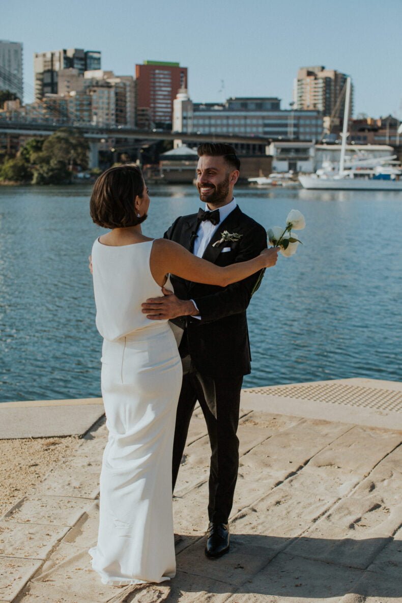 Meet Alice and Alex, two food lovin’ lovers. Now, get a load of Alex’s proposal. “He contacted some of our fave restaurants who each provided a dish which Alex plated up at home (10 William St’s Pretzel, Kingfish Cevice from Automata, Chuck Tail with Mushroom and Marsala from Six Penny and the Date Tart from Rockpool)”, Alice gushes. She said yes, obvs. Fast forward a year and Alice lived out her bridal fantasy, decked out in a chic Lola Varma number (with hair and makeup by our faves at The Future Mrs). For the evidence, as captured by lens-legends Corinna & Dylan, and good times, as provided by the fun folk over at The White Tree, you best get scrolling…