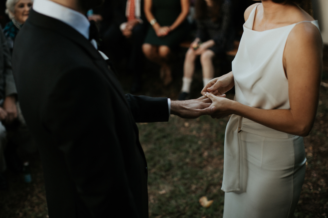 CONTRIBUTING VENDORS Photographer Corinna & Dylan Cinematographer The White Tree On The Day Co-ordinator Audrey & Angus Stylist, Florist, Hire Items & Signage George & Smee Stationery Kara Adolfson (Brides friend) Printer The Distillery Ceremony Venue Private Property Reception Venue Porteno Events Cake Buttercream Wedding Favours Continental Deli Entertainment Imbue Acoustic Duo, The White Tree Celebrant Tami Sussman Rings Natalie Marie Jewellery BRIDE Ceremony Dress Lola Varma Jumpsuit Viktoria & Woods Shoes Loeffler Randall, Common Projects Earrings Reliquia Hair & Makeup Kelly Bowman via The Future Mrs GROOM Suit P. Johnson Cufflinks Buckle 1922 Shoes Church’s Barber Cutri and Co