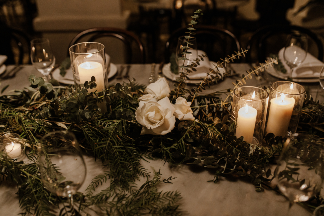 FAVOURITE DETAILS “The styling that George & Smee put together was incredible! We had a sea of candles and eucalyptus greenery which gave the most stunning smell that filled the room. It’s such a great memory whenever we smell eucalyptus now, it takes us right back. Also, the wedding cakes in the can from Continental Deli were AMAZING!”